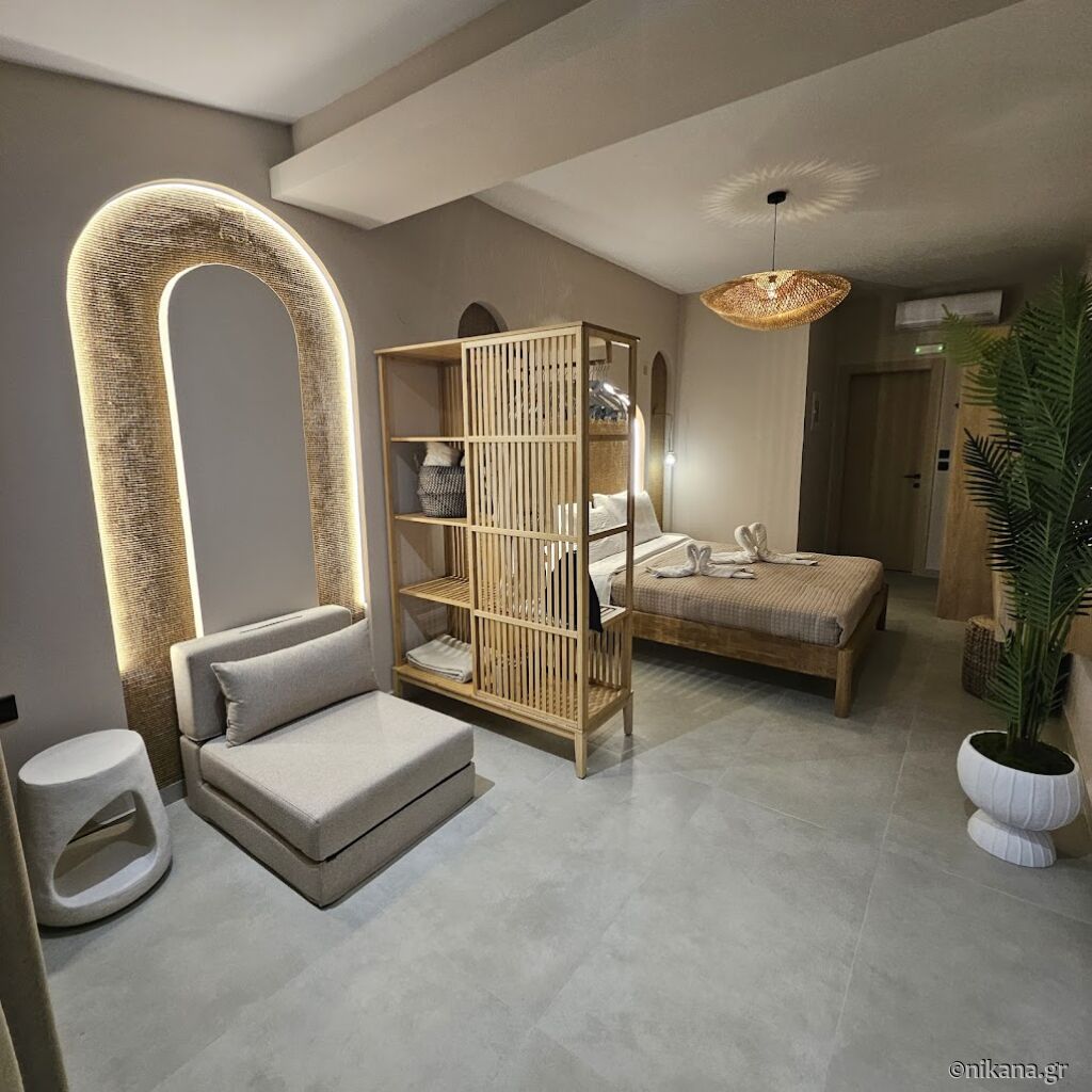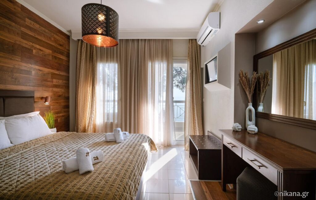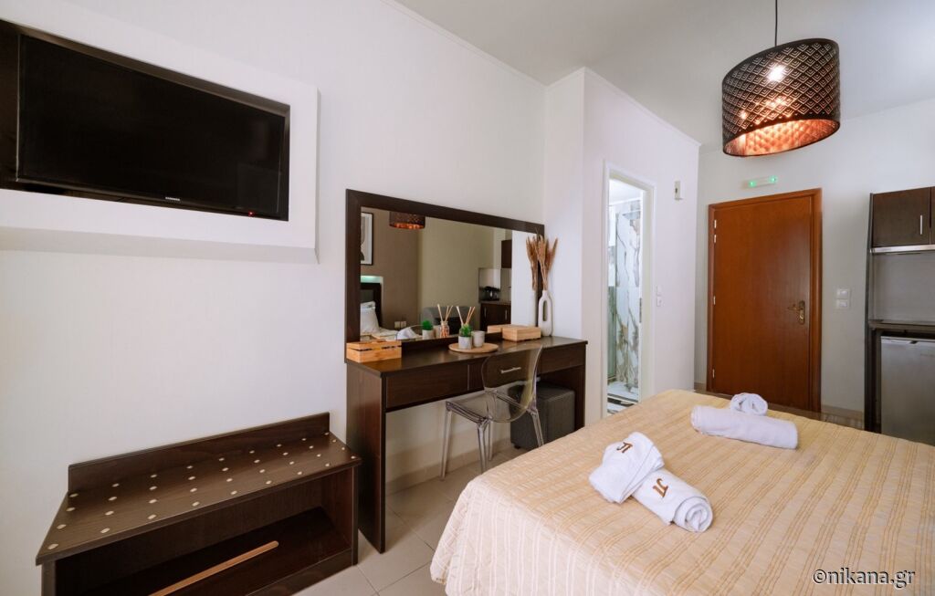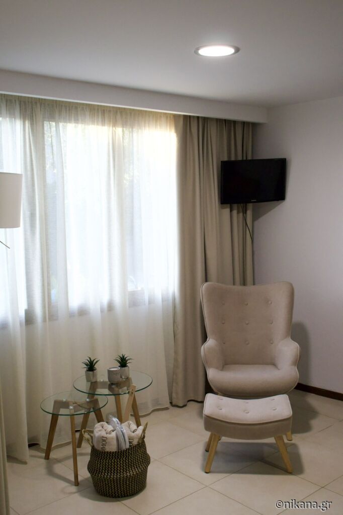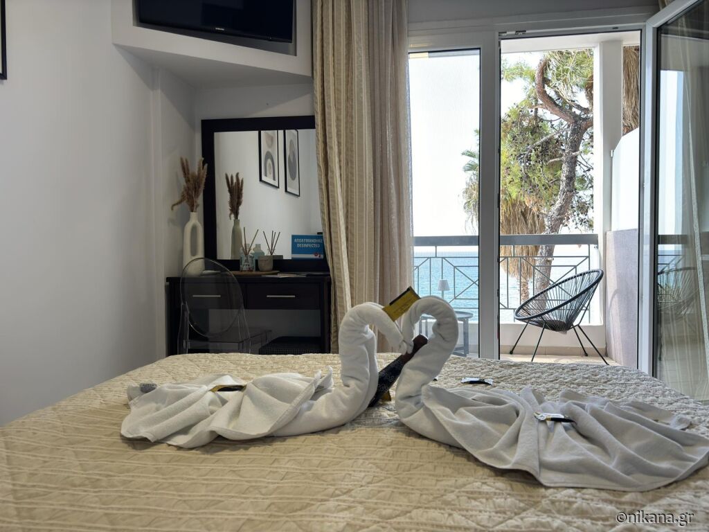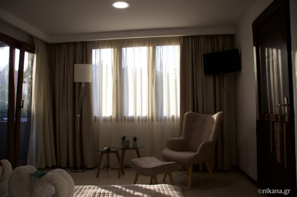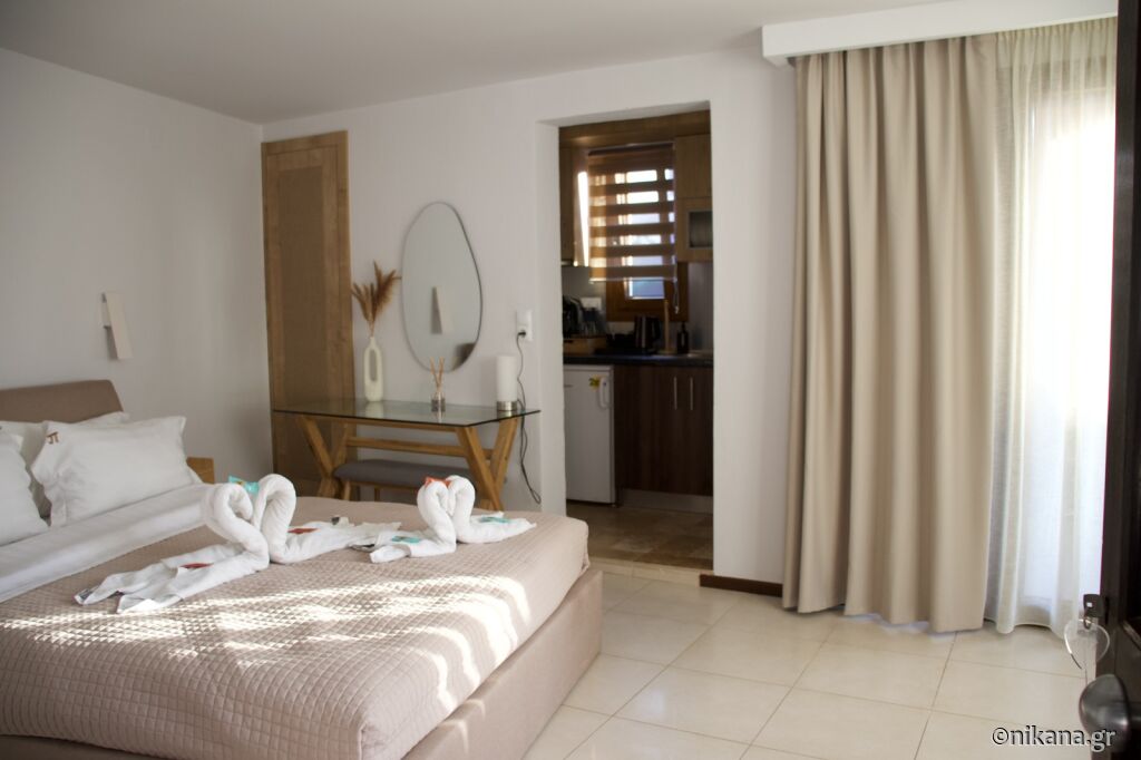 Cele două clădiri se află lângă plajă. Se oferă studiouri duble și triple (de 20 și 23m2) și apartamente cu dormitor separat (junior suite, 40m2).