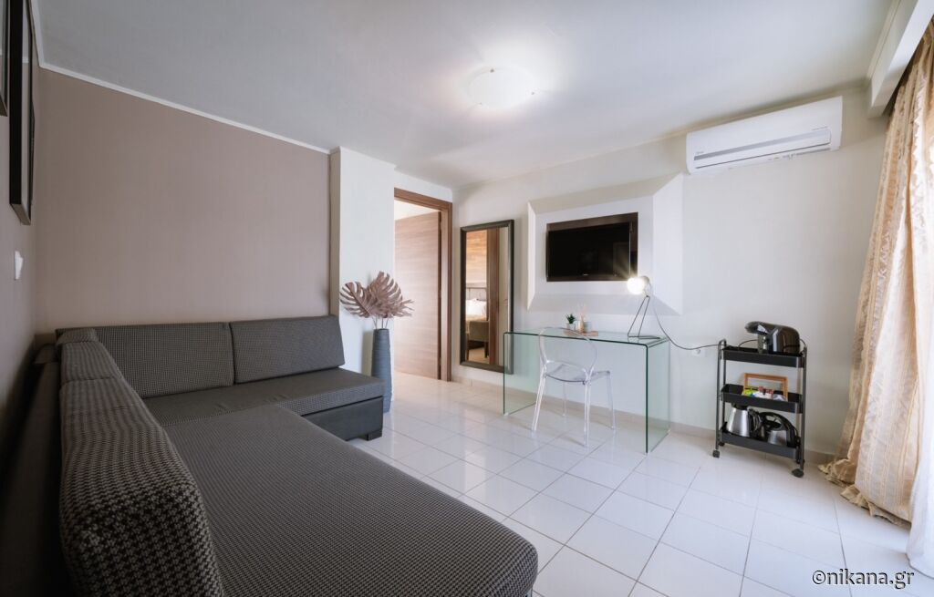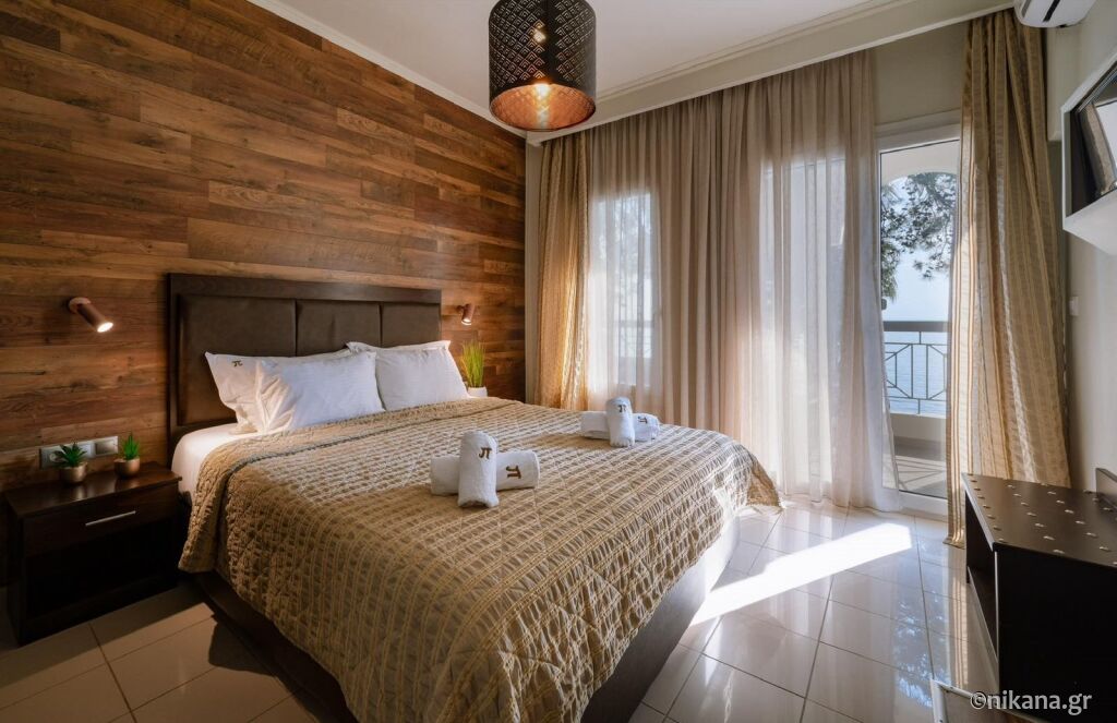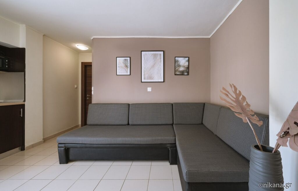 Apartamentele sunt foarte bine luminate, mobilierul este în nuanțe deschise, astfel că șederea în ele este cu adevărat plăcută, alături de priveliștea spre mare. Sunt destinate familiilor cu doi sau trei copii și au terase spațioase, bucătărie complet utilată, TV, pat dublu, canapea extensibilă de dimensiunile patului dublu și aer condiționat. Dormitorul este separat de zona de zi în care se găsește bucătăria cu zona de luat masa.