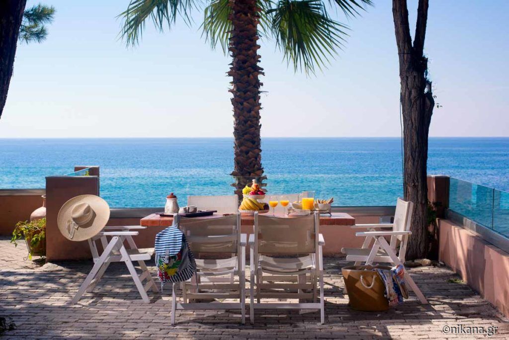 Papaoikonomou 1 Villa se află pe plajă, în inima Potosului, în una dintre cele mai bune locații posibile, departe de trafic și aglomerație. Are o curte mare și fenomenală plină de verdeață, cu o zonă de ședere în umbră și acces direct la plajă. Parcarea este asigurată în curtea vilei pentru toți oaspeții.