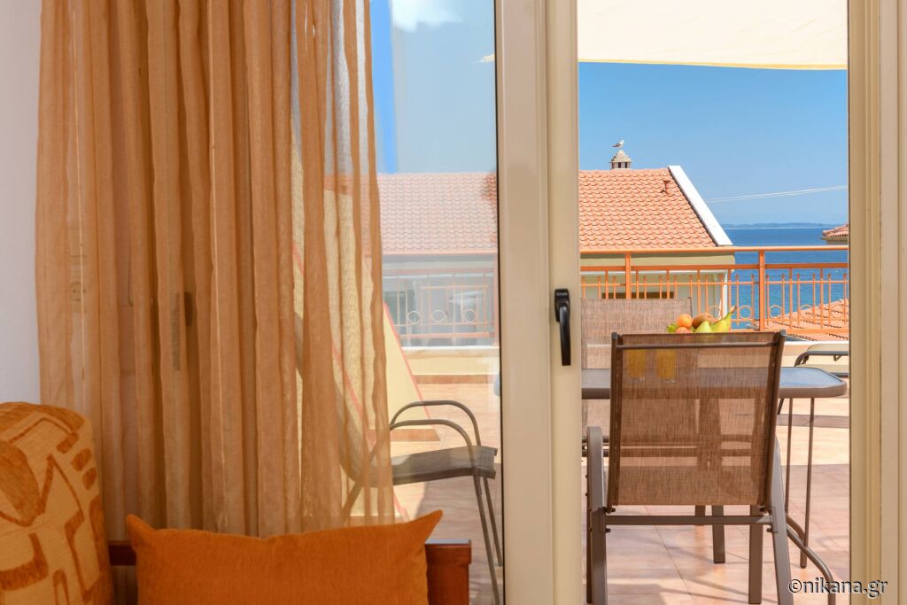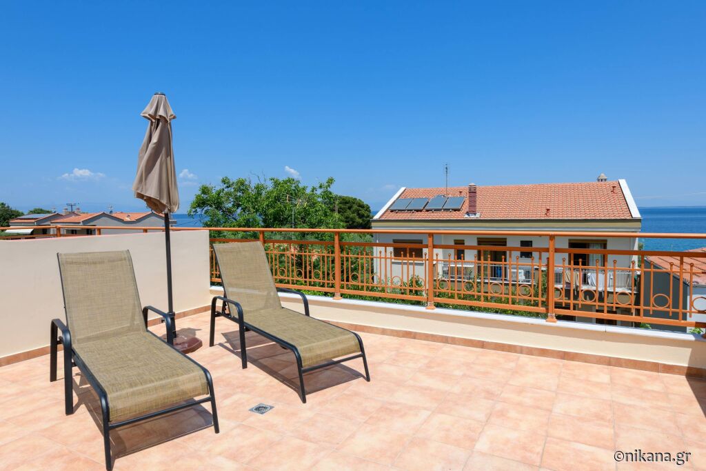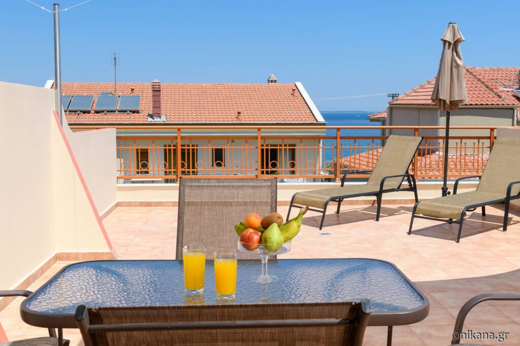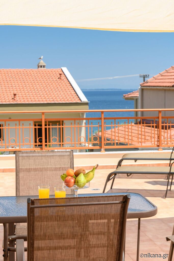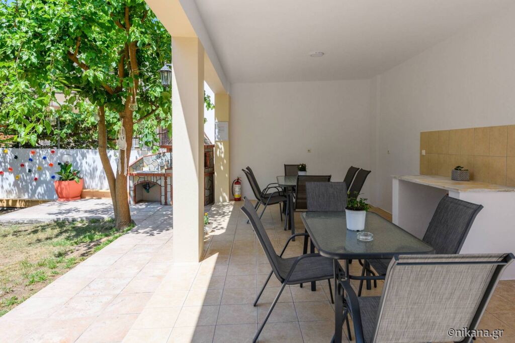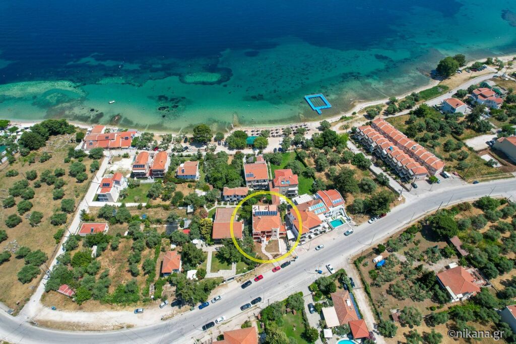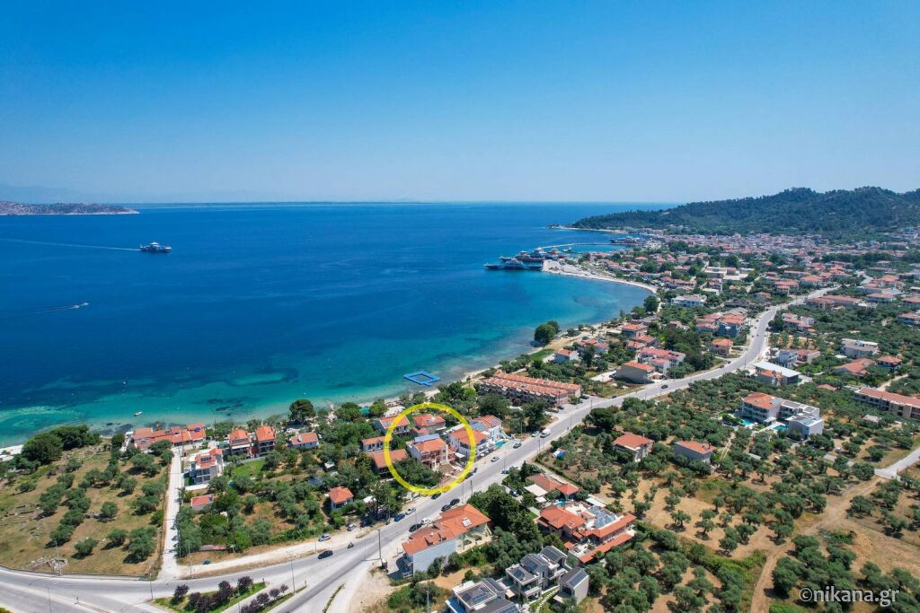 Când coborâți de pe feribot, urmați direcția spre dreapta și conduceți de-a lungul mării pe drumul principal (aproximativ 300m), apoi ajungeți la o zonă unde un drum mai îngust duce direct la hotelul “Vournelis” și la plaja cu același nume, iar voi continuați pe drumul principal și faceți o întoarcere la stânga, apoi, după aproximativ 150m, ajungeți la prima intersecție mare (cu strada Dimitriadou) și virati la dreapta, iar apoi, după 600m, veți ajunge la vila “Roxani”, care se află pe partea dreaptă a drumului, în fața vilei “Nikoleta”.