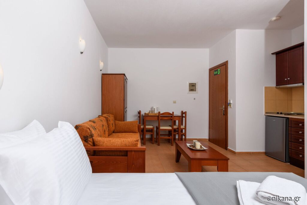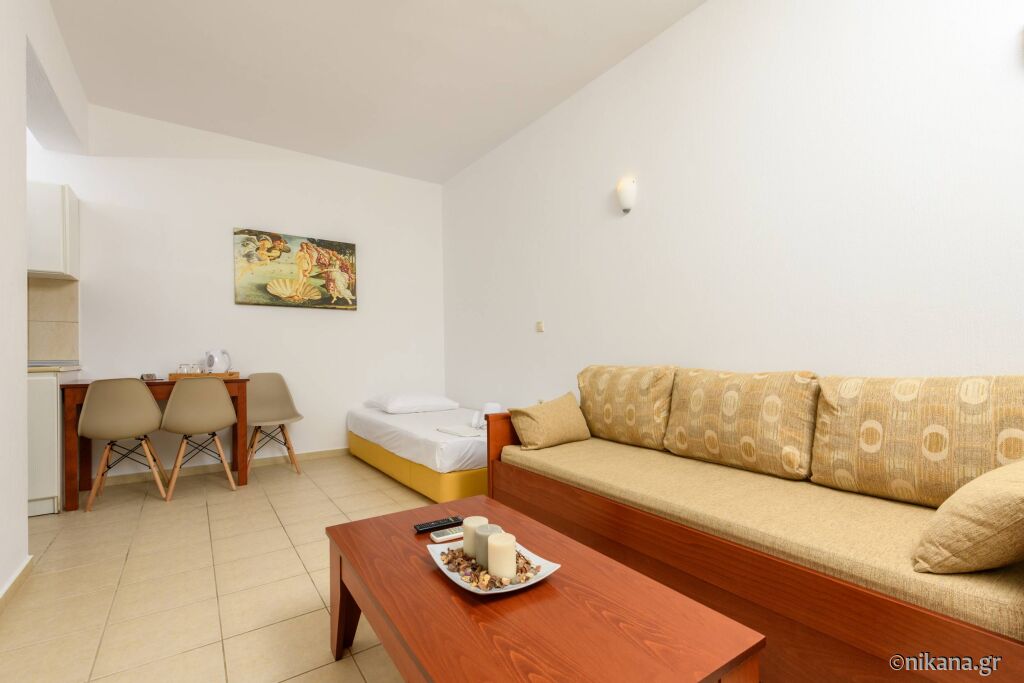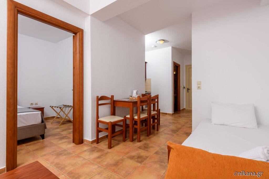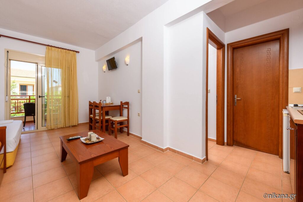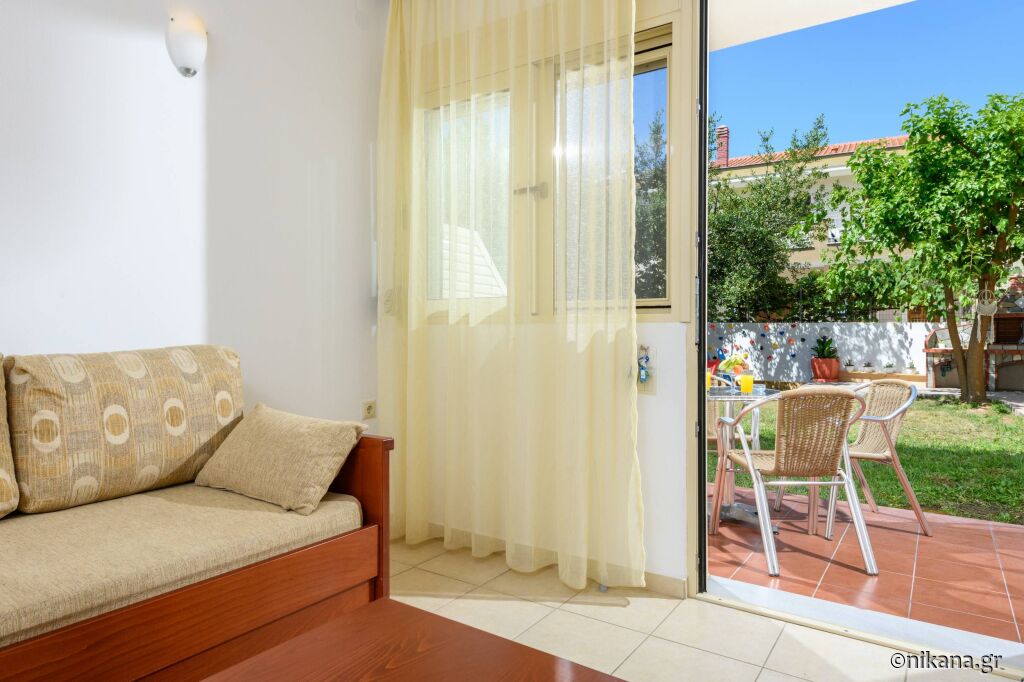 La parter se afla doua apartamente care au pat dublu in dormitor iar in living se afla un pat de o persoana si o canapea extensibila. Se uită la curtea din spate și apartamentul iese direct în curte, așa că aceste apartamente sunt potrivite pentru familiile cu copii mici. Există, de asemenea, două studiouri cu un pat dublu și o canapea.