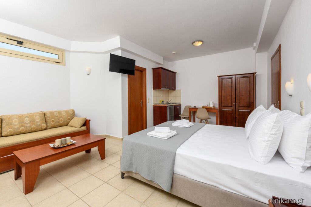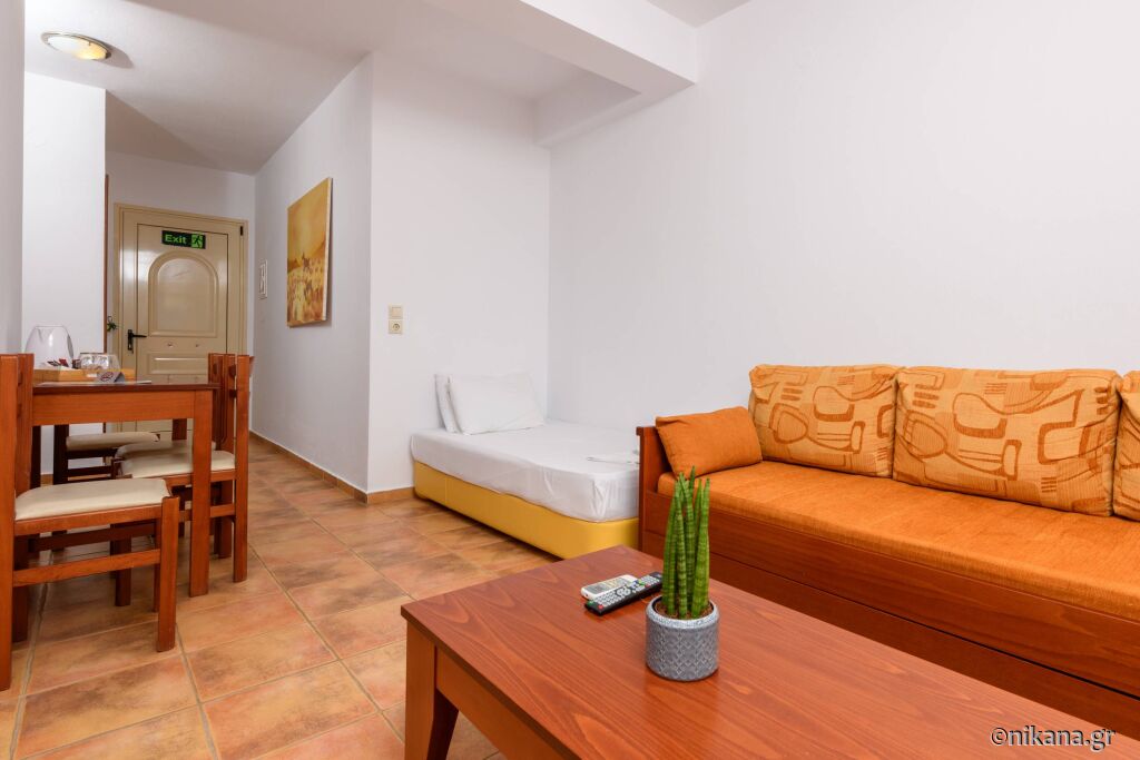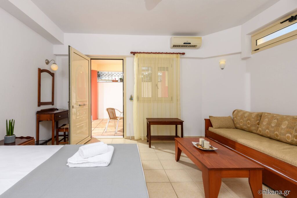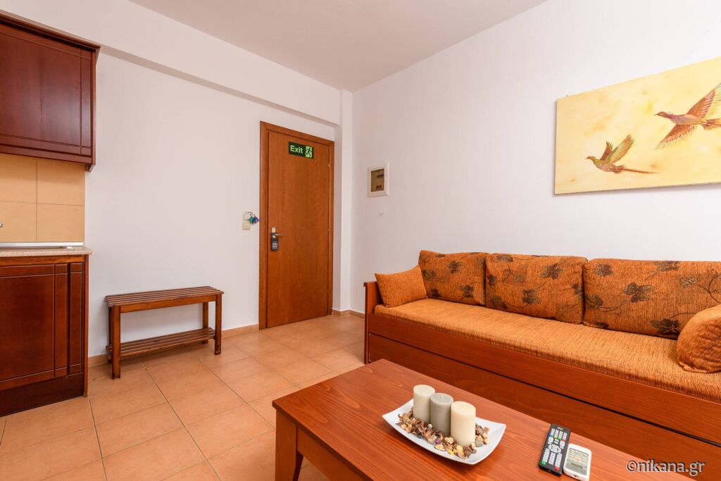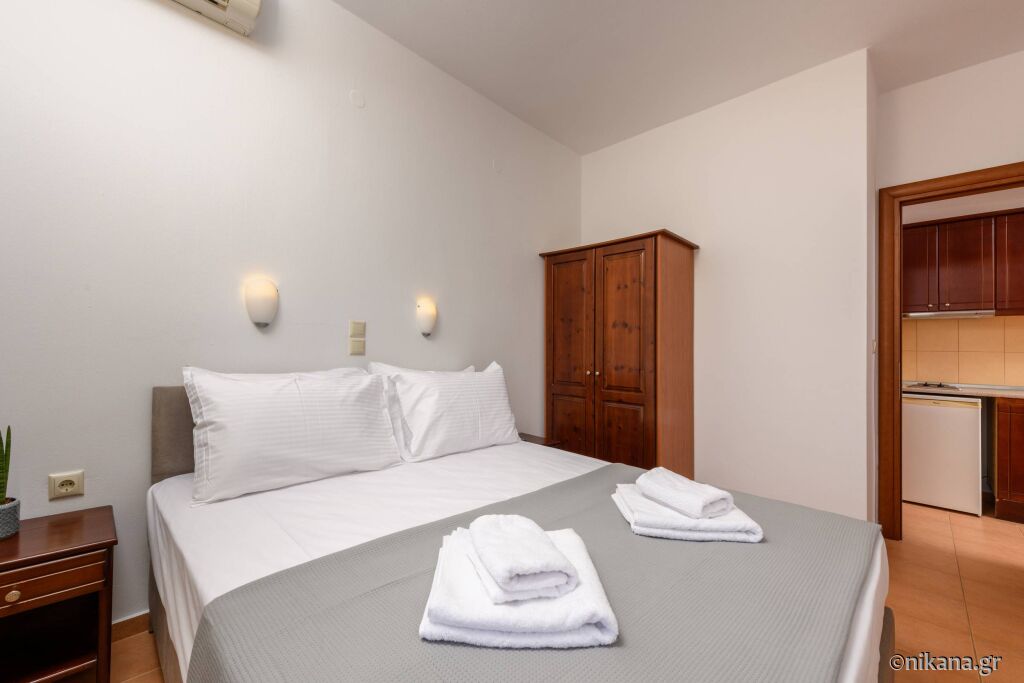 La parter se afla doua apartamente care au pat dublu in dormitor iar in living se afla un pat de o persoana si o canapea extensibila. Se uită la curtea din spate și apartamentul iese direct în curte, așa că aceste apartamente sunt potrivite pentru familiile cu copii mici. Există, de asemenea, două studiouri cu un pat dublu și o canapea.