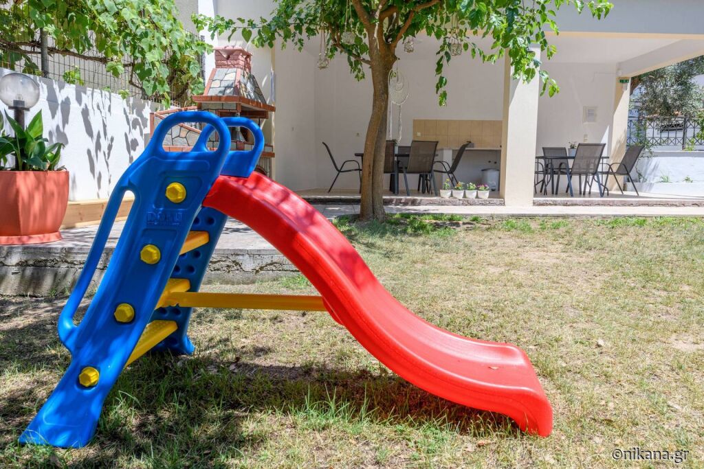 Vila Roxani are o curte frumos amenajata, fara parcare privata, insa este suficient spatiu langa vila si drumul public din fata pe care se poate parca gratuit. În curtea din spate se află un foișor cu o masă și scaune, precum și un grătar comun, iar pentru cei mici este amenajat un loc de joacă la umbră.