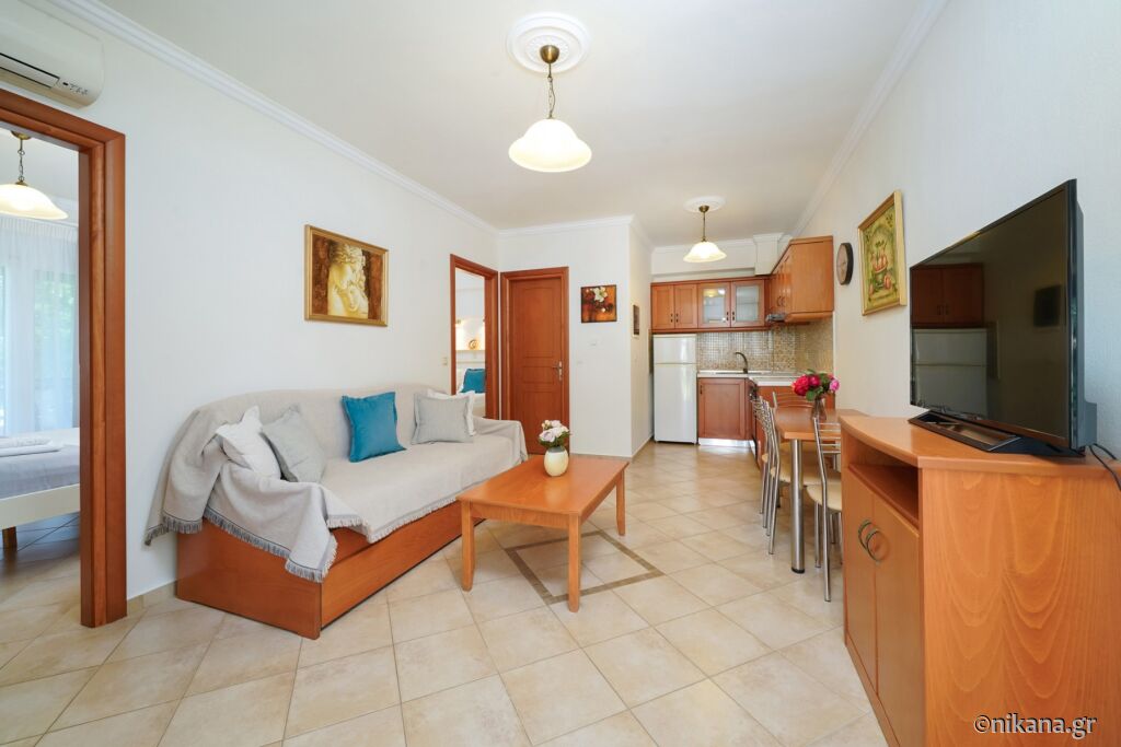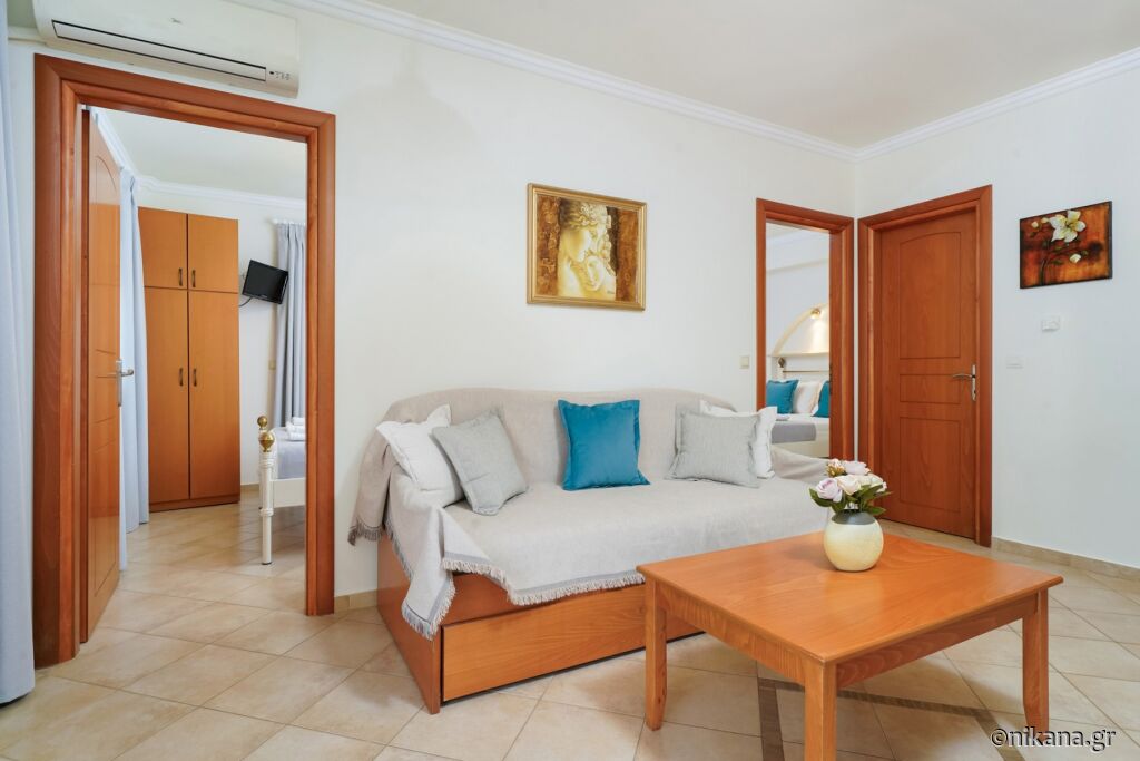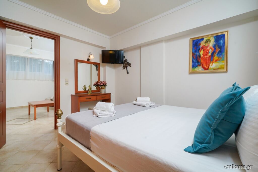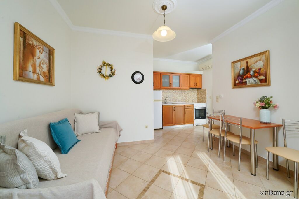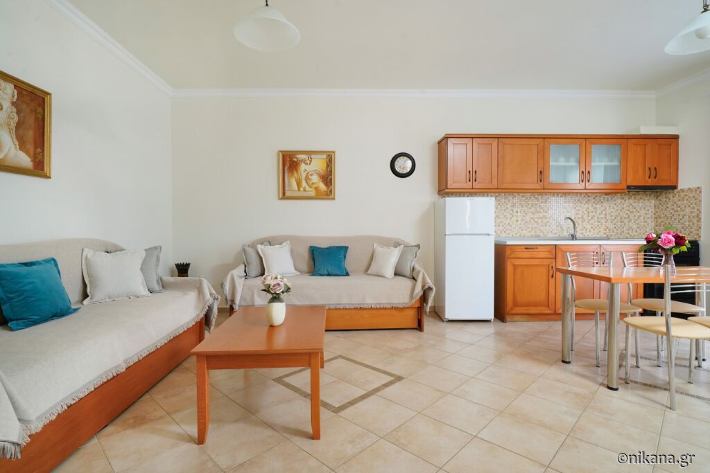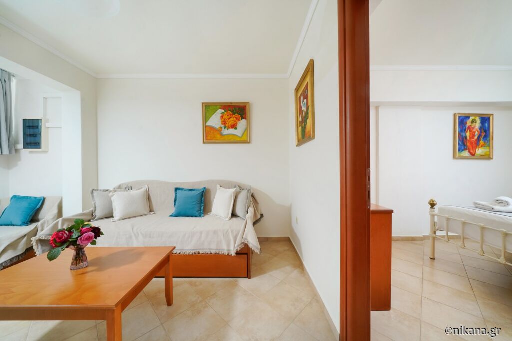 Ima mesta od 25/6 u mezonetu. Ima jednu spavacu sobu na spratu gde je francuski lezaj. Na nizem nivou su dva singl lezaja i jedna fotelja na rasklapanje. ako odgovara popunite upit, a ako ne odgovara napisite nam na mail kakav smestaj volite i do koje cene pa cemo vam preporuciti nesto drugo nikana@nikana.gr