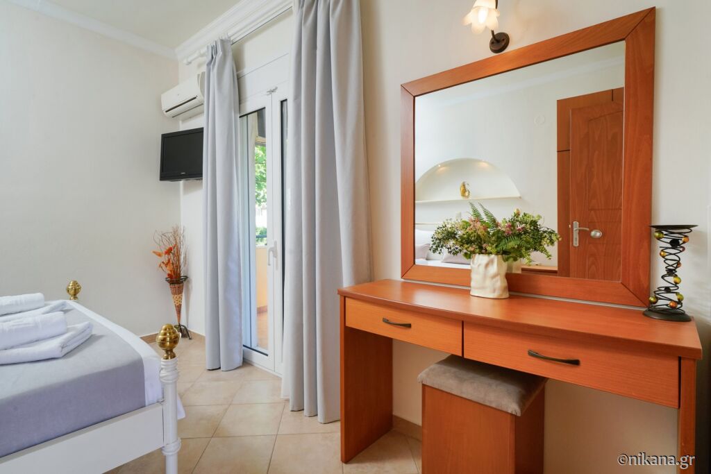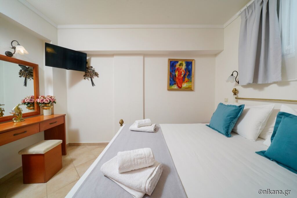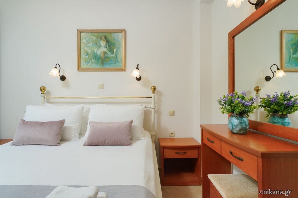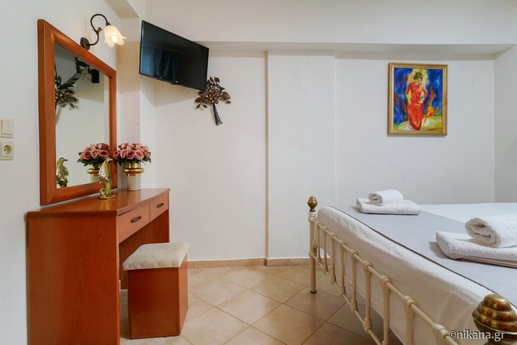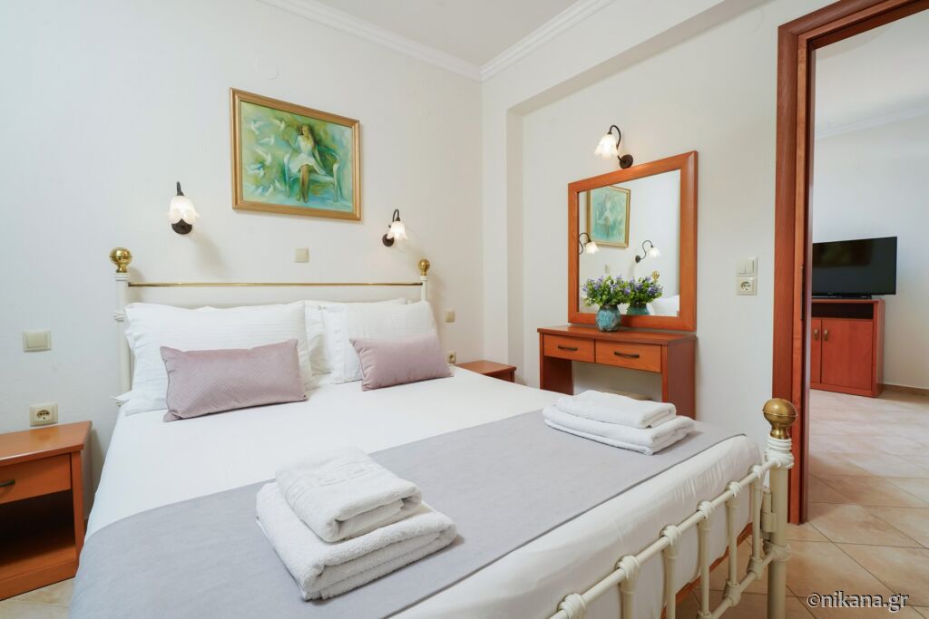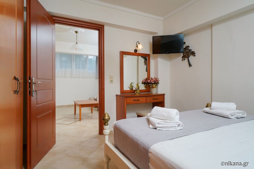 Ima mesta od 25/6 u mezonetu. Ima jednu spavacu sobu na spratu gde je francuski lezaj. Na nizem nivou su dva singl lezaja i jedna fotelja na rasklapanje. ako odgovara popunite upit, a ako ne odgovara napisite nam na mail kakav smestaj volite i do koje cene pa cemo vam preporuciti nesto drugo nikana@nikana.gr