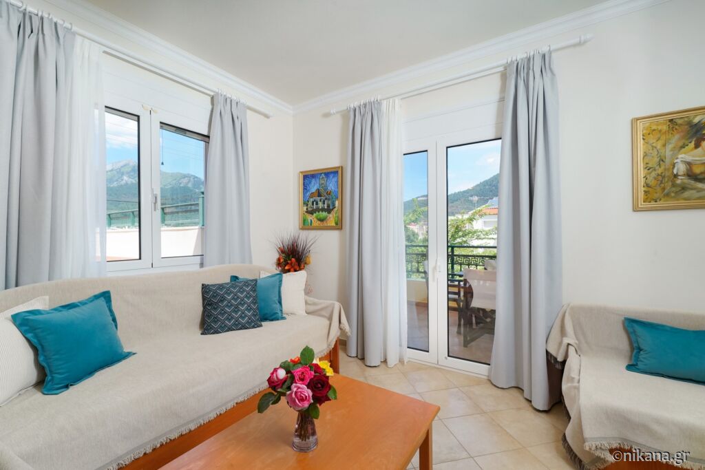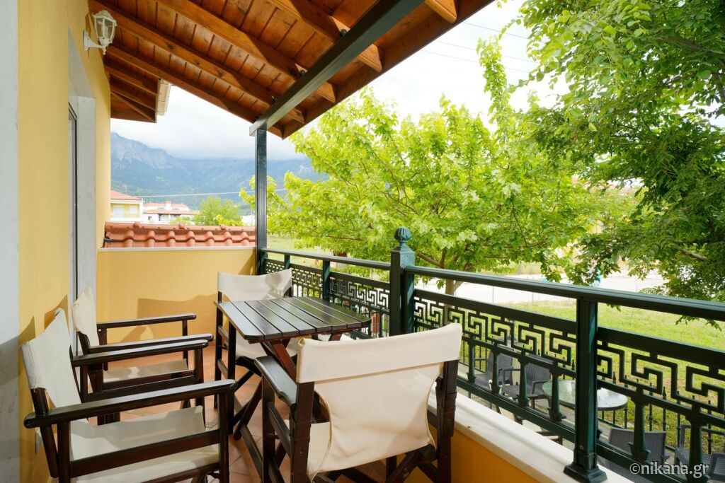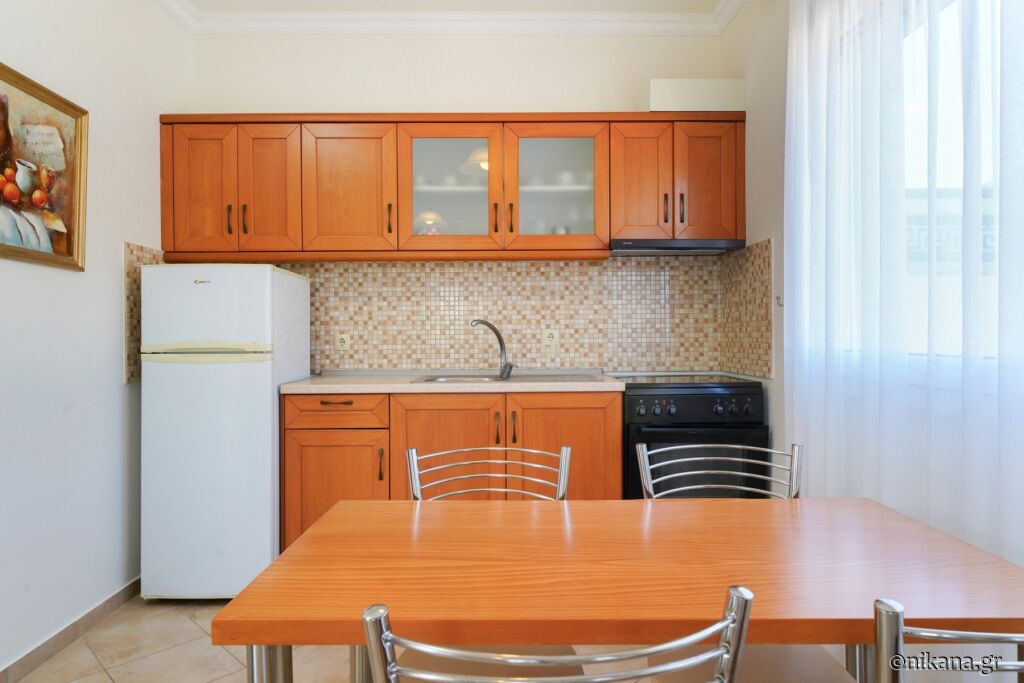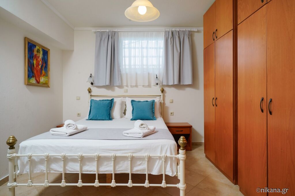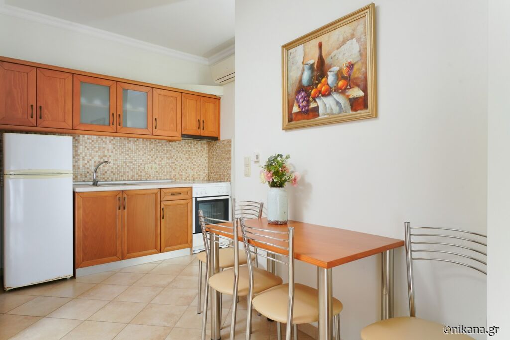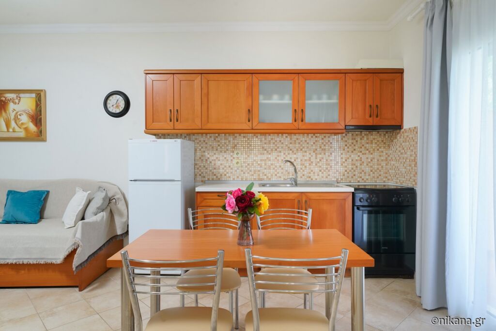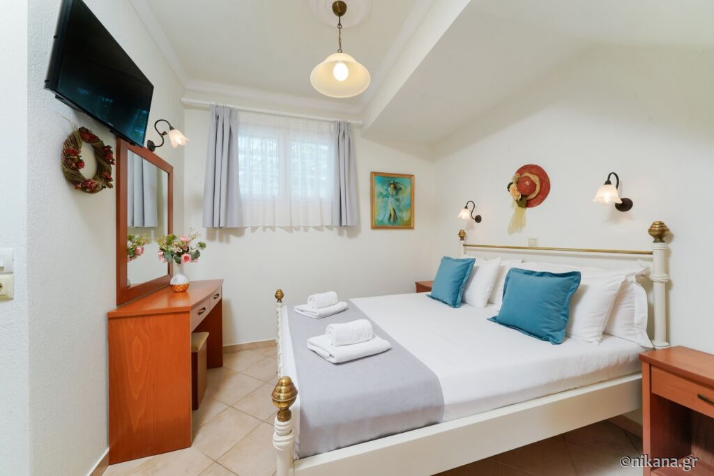 Cazarea este situată în Skala Potamia, în mijlocul marii golfului cunoscut sub numele de Golden Beach. Este situat într-o locație liniștită, înconjurat de frumoase vile de închiriat, cu vedere la mare sau la muntele care înalță deasupra întregului golf. Este de o calitate foarte bună și se află la doar 2-3 minute de mers pe jos de plaja cu nisip și adâncime mică.