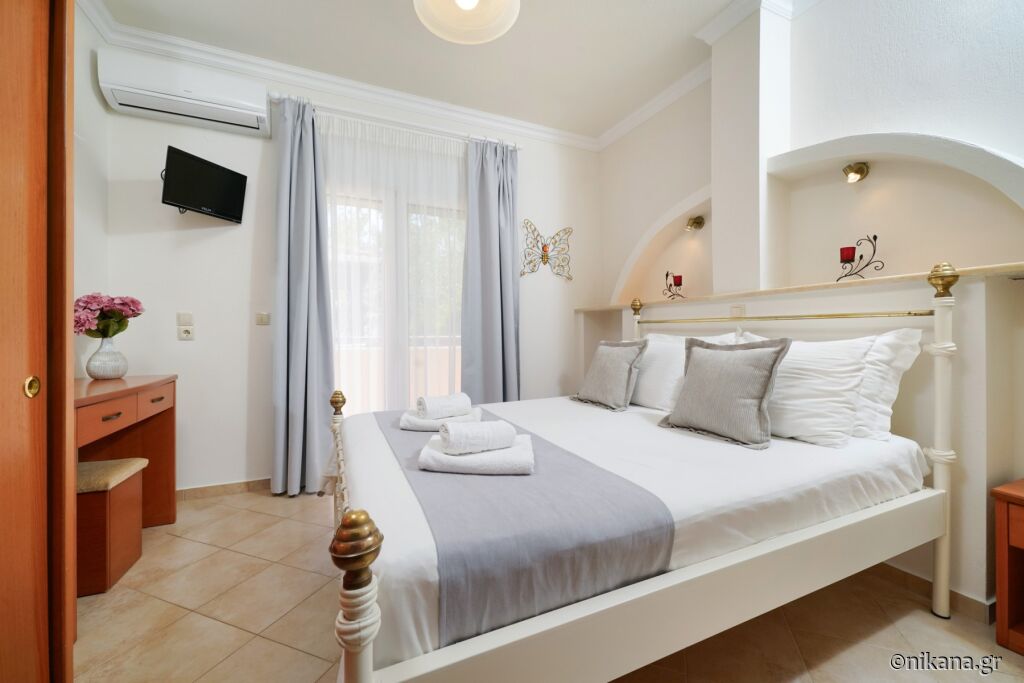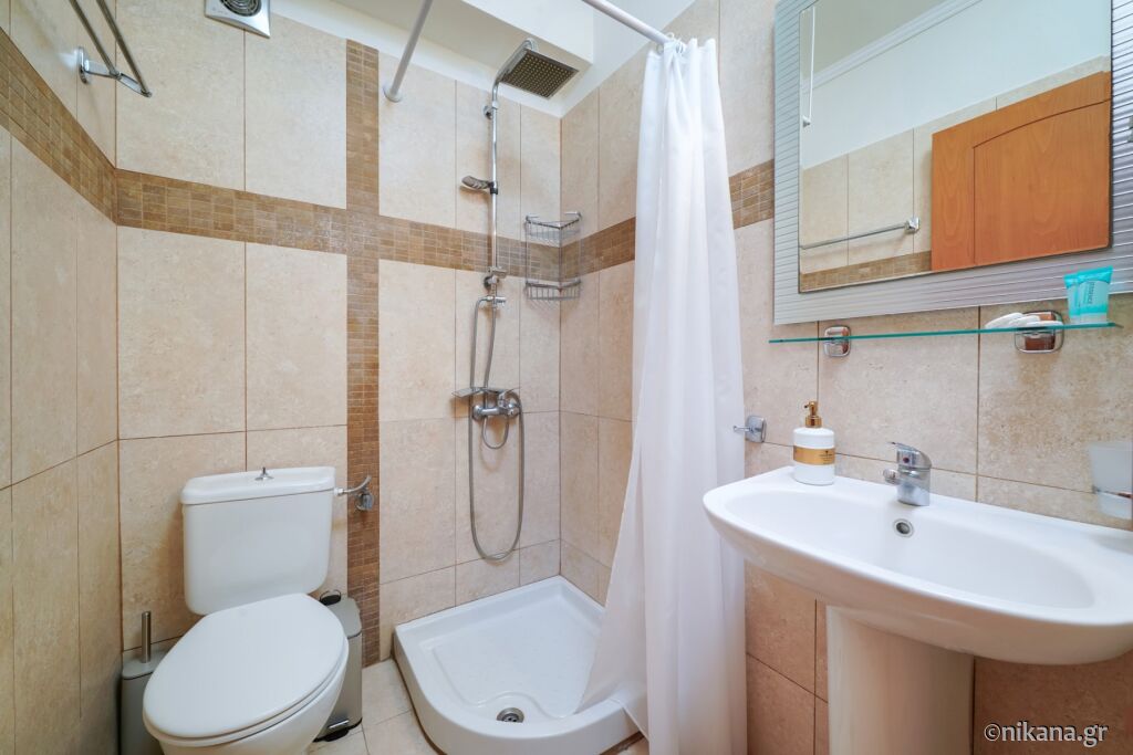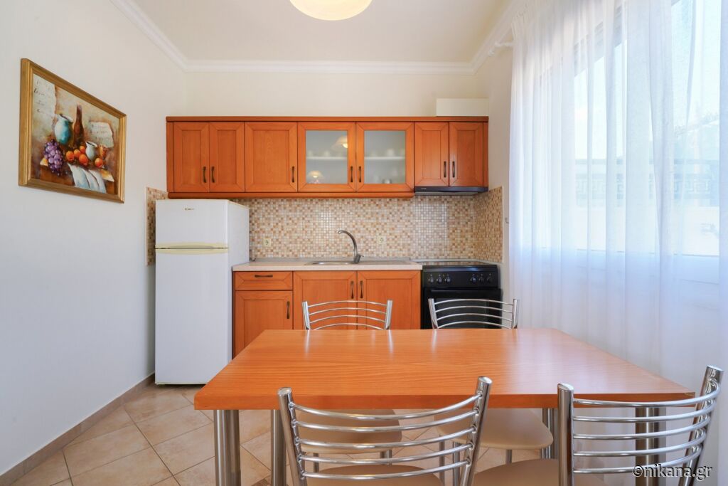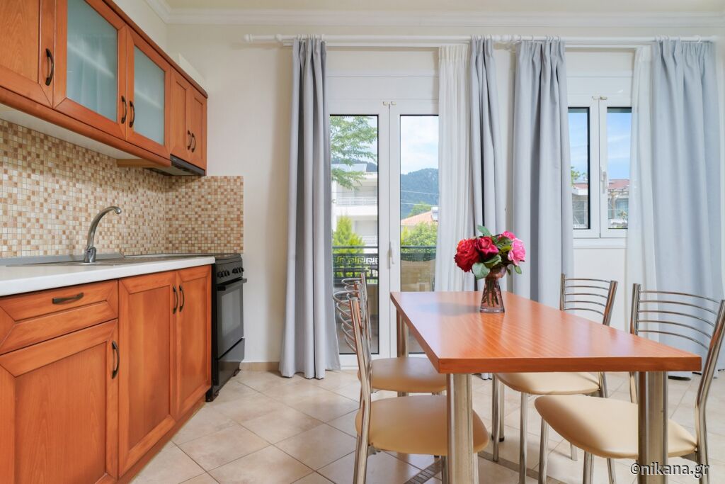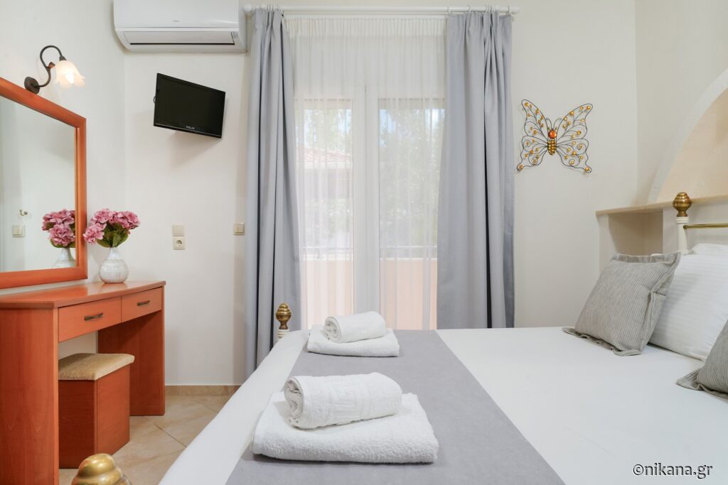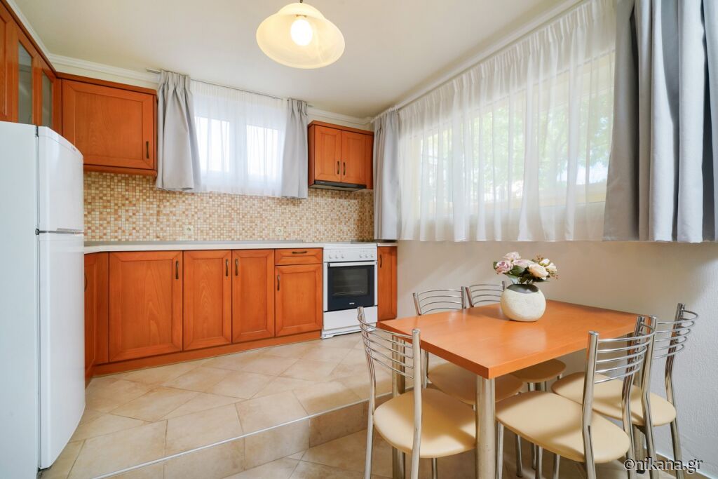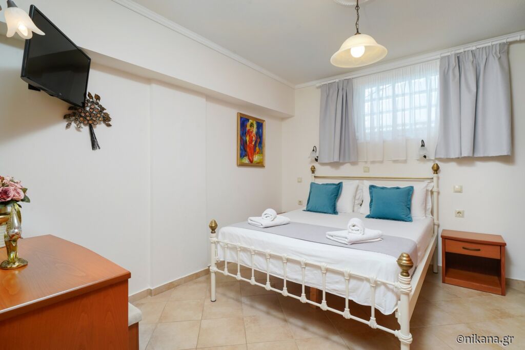 Cazarea este situată în Skala Potamia, în mijlocul marii golfului cunoscut sub numele de Golden Beach. Este situat într-o locație liniștită, înconjurat de frumoase vile de închiriat, cu vedere la mare sau la muntele care înalță deasupra întregului golf. Este de o calitate foarte bună și se află la doar 2-3 minute de mers pe jos de plaja cu nisip și adâncime mică.