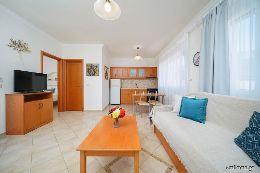 Dacă doriți o cazare frumoasă și de calitate, într-un mediu ideal pentru o vacanță liniștită în familie fără viață de noapte, Esperides Apartments este o alegere excelentă. Dacă doriți distracție și divertisment, Limenas este la 15 km distanță și oferă o gamă largă de magazine, restaurante fast-food, supermarketuri, taverne și o promenadă mare.