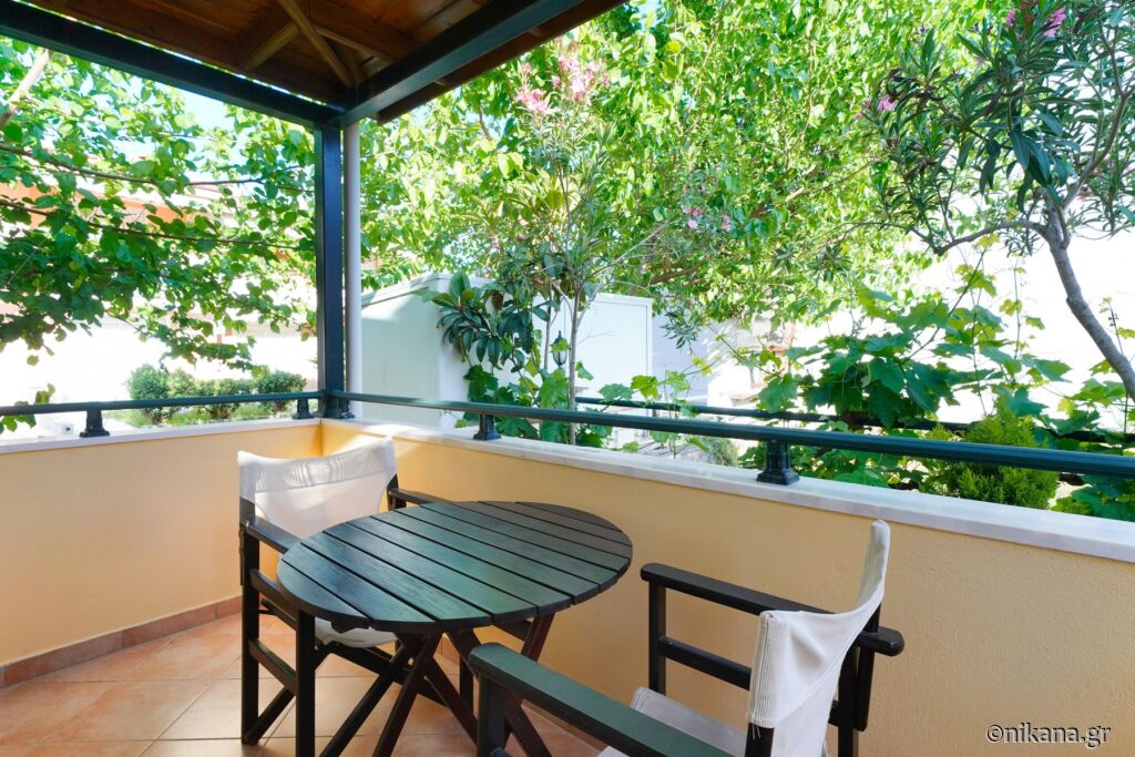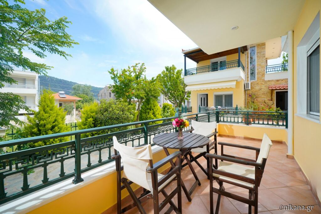 Bili smo prosle godine sa decom, po 4. put na Tasosu.<br />Dobili smo ogromni apartman u potkrovlju sa terasom od 100m2 koju ne delite ni sa kim. <br />Ostali apartmani takodje imaju terase (ne ovako velike) i sve su rasporedjene tako da svako ima intimu, tj. nije kao u vecini grckih smestaja da ste od ostalih gostiju pregradjeni samo sa 10cm vazduha ili eventualno stakla.<br />Usotalom, sa decom ili bez njih, vremenom shvatite da je na moru bitnija terasa nego smestaj u kojem samo spavate, a sam smestaj je sam vrh, ogromni prostrani i dobro opremljeni apartmani po sistemu "novije nego kuci" :)