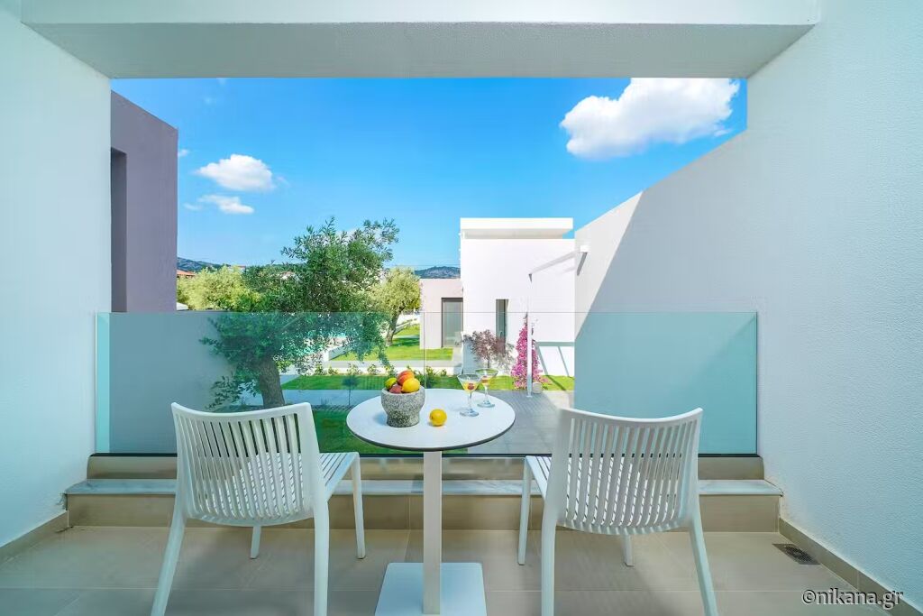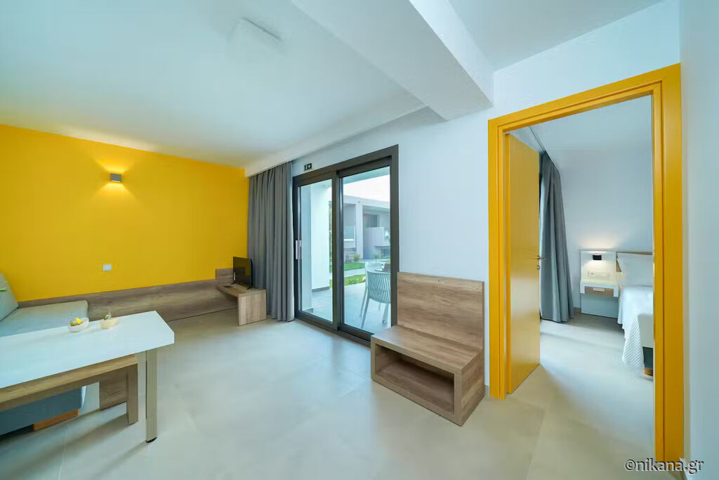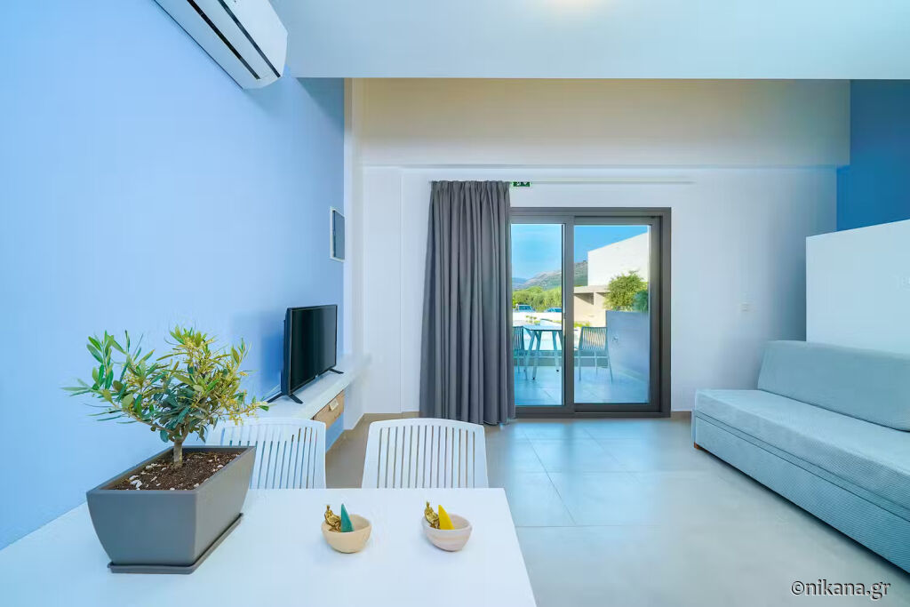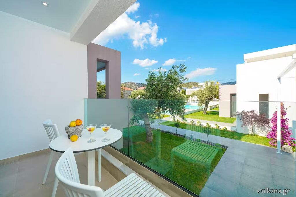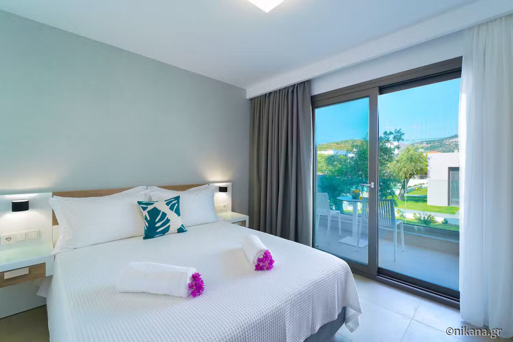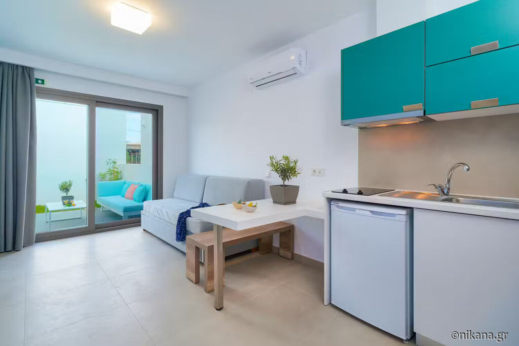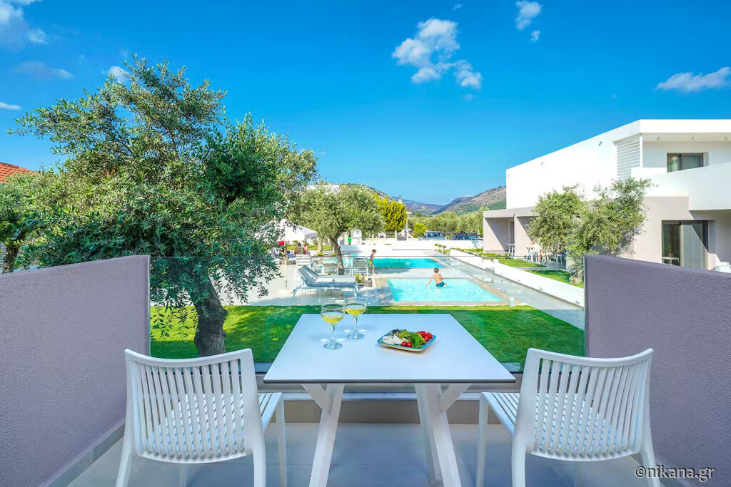 Este situat într-o zonă liniștită din Potos, la aproximativ 800m de plajă și la 700m de centru.