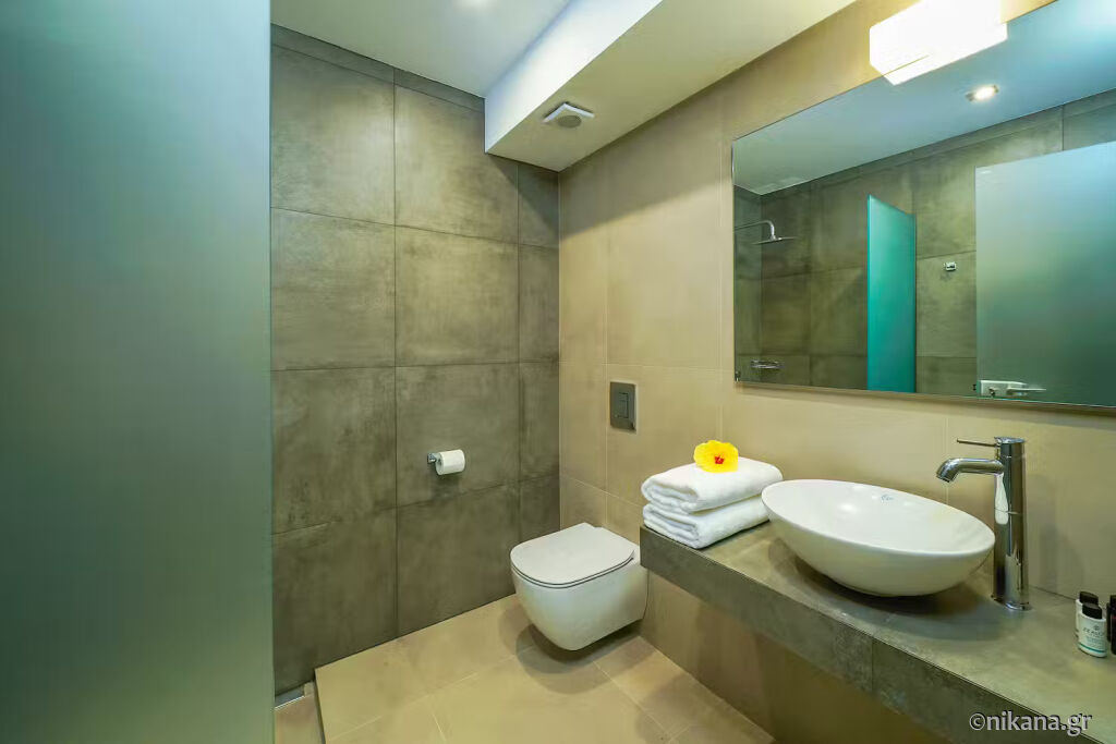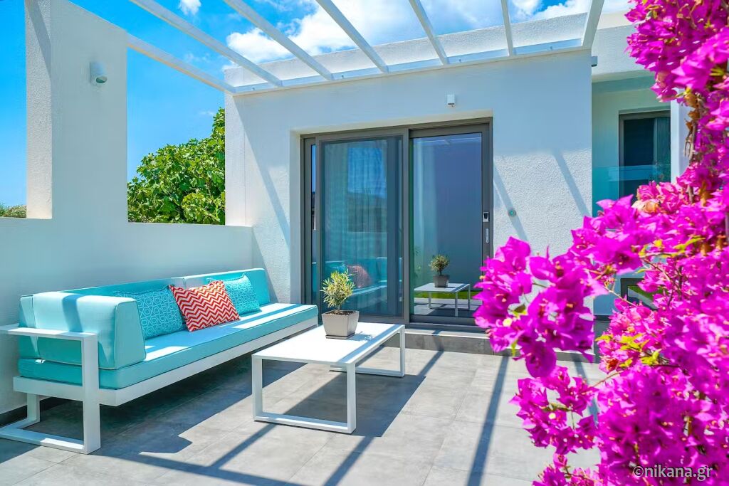 Pentru a ajunge la cazare, trebuie să virați la stânga la intersecția principală, spre Theologos, și să conduceți aproximativ 600 m până la locul de joacă pentru copii, situat pe partea stângă a drumului. Pe partea dreaptă veți vedea o răscruce și veți vira acolo, unde, după câteva sute de metri, veți vedea vila pe partea dreaptă a drumului, imediat lângă Petra Houses și în fața unității de cazare Esperia Village.