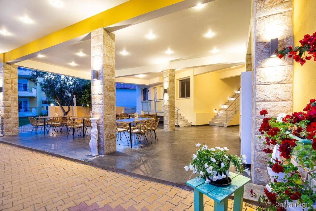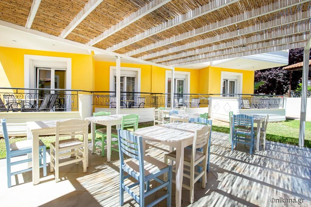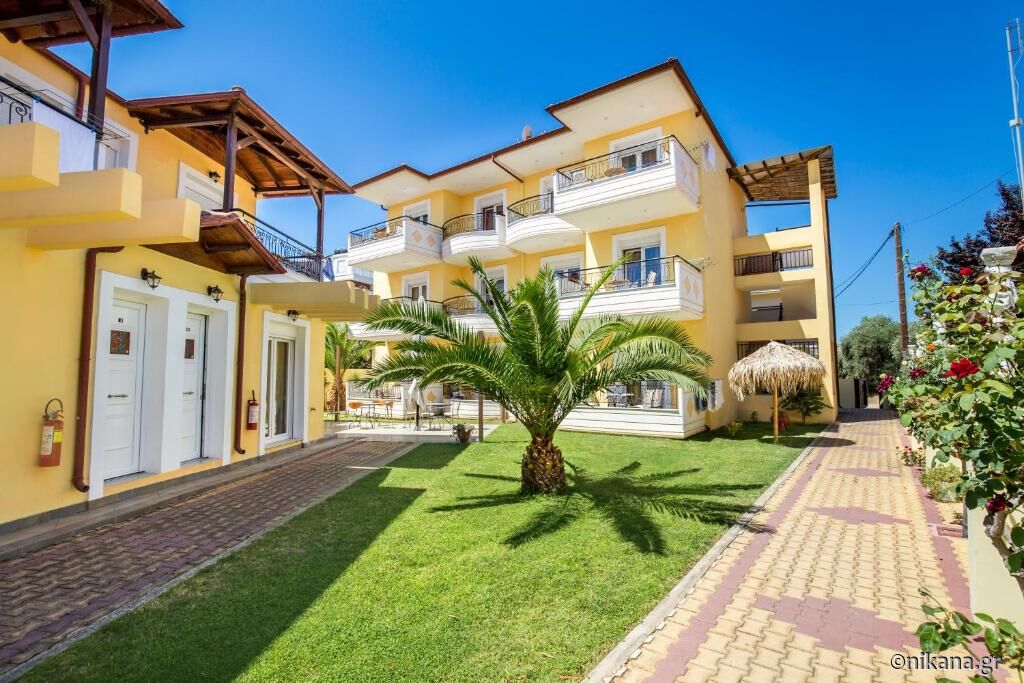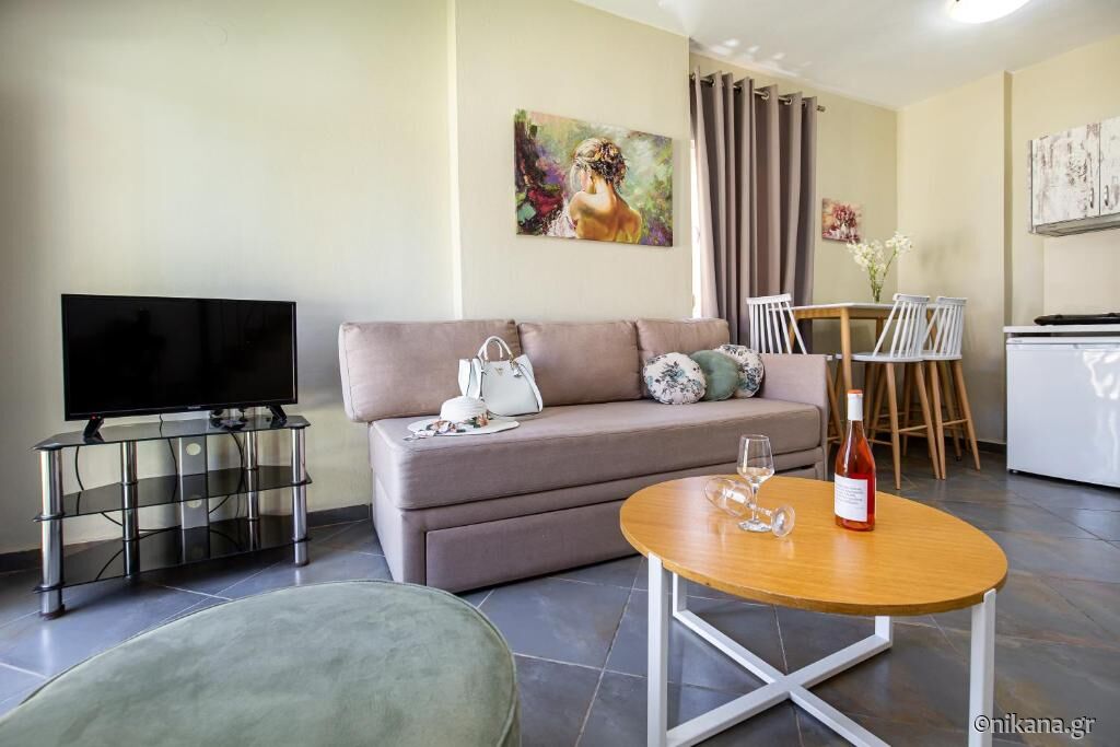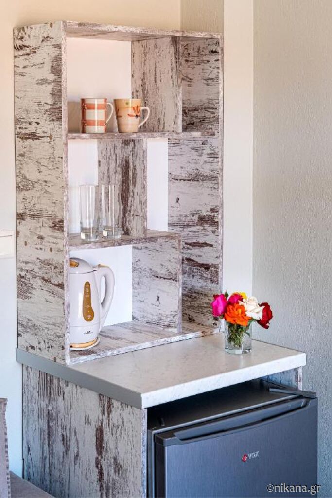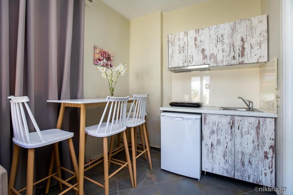 Studio Danae (nr. 105) este pentru trei persoane și are o suprafață de 35m2. Această unitate nu are terasă. În cameră se găsesc pat dublu, canapea extensibilă, bucătărie utilată cu plită și frigider mic, precum și baie cu cabină de duș semideschisă. Studio Vasiliki (nr. 106) este amenajat în același mod. Singura diferență este că această unitate are o baie ceva mai mică care în loc de cabină de duș are doar plăci ceramice. Ambele unități sunt destinate pentru maximum trei persoane.