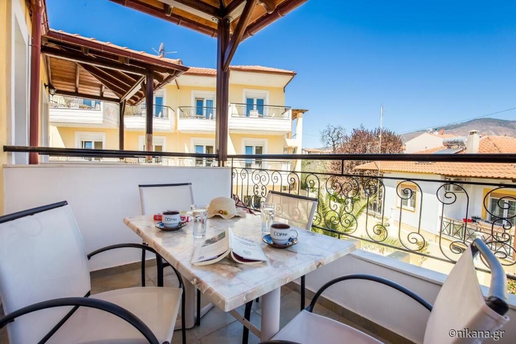 Mezonet Nefeli (nr. 207) poate găzdui până la patru persoane și are o suprafață de aproximativ 47m2. La nivelul de jos se află baia, bucătăria, canapeaua extensibilă cu pat pliant, precum și o terasă mai îngustă cu vedere spre stradă. Pe galerie care nu este separată cu uși se află un pat dublu.