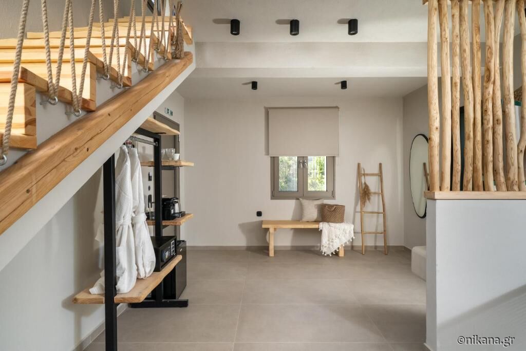 Sunt disponibile zece camere modern echipate, într-un stil mediteranean cu accent pe tonuri pământești. Proprietatea este formată din trei clădiri separate, cu o piscină, iar unitățile de cazare sunt situate atât la parter, cât și la etajul întâi.