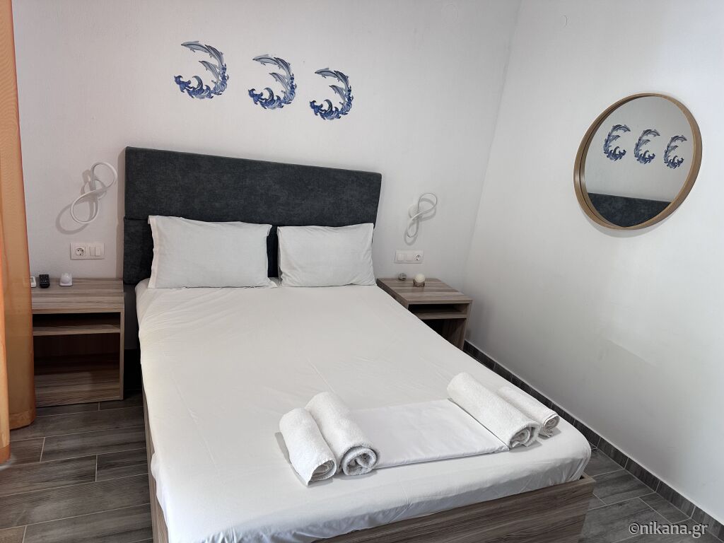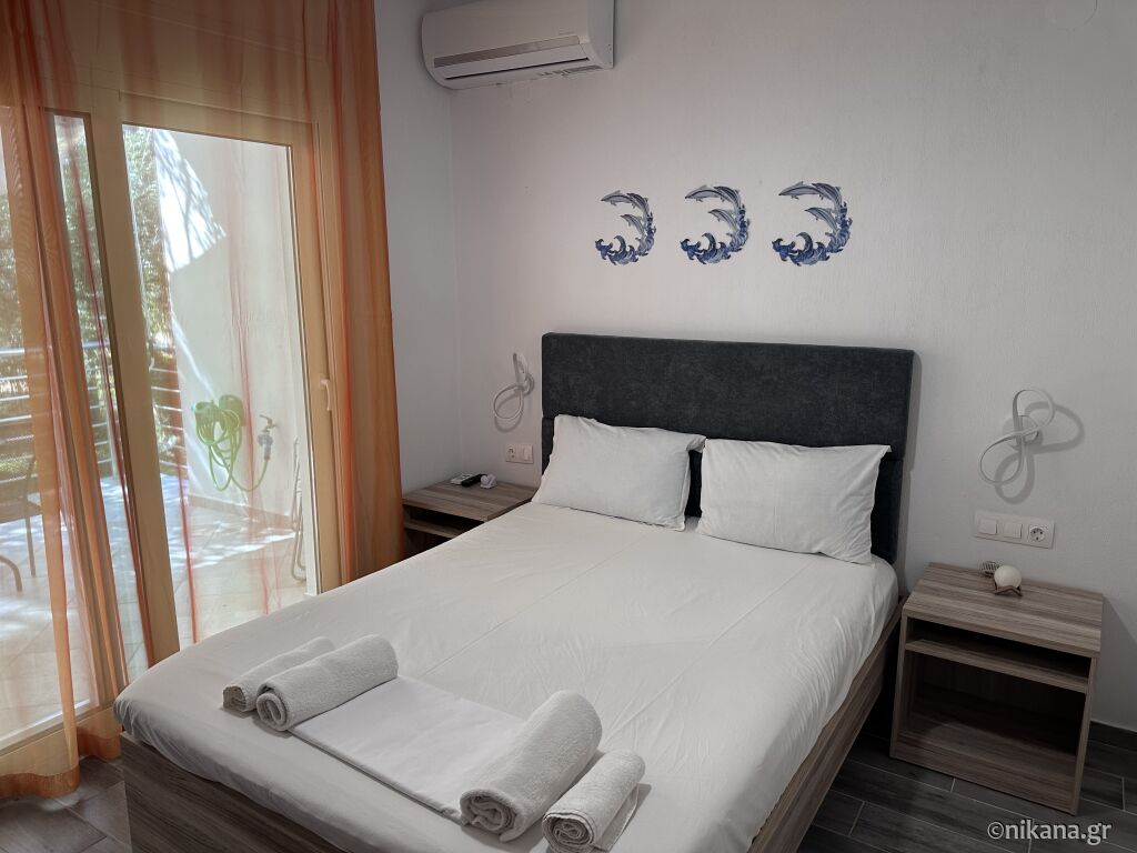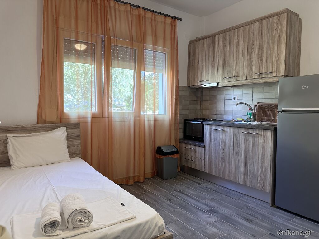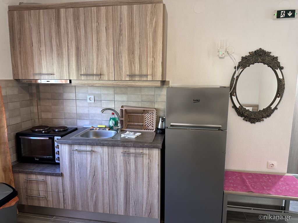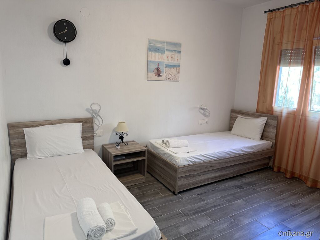 Apartamentul Stamatis este situat la parter (45m2). În dormitor este un pat dublu, în timp ce în cealaltă cameră se află bucătăria și două paturi single. Un pat suplimentar poate fi adăugat aici. Acest apartament nu va fi disponibil pentru rezervări în sezonul 2025.