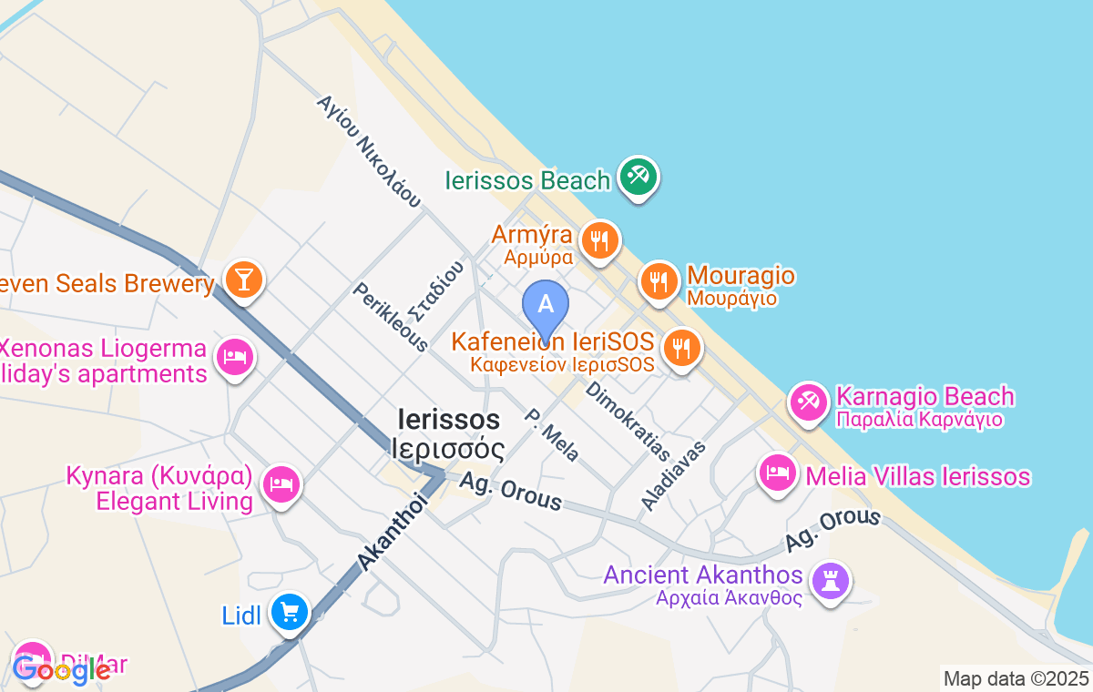 Plaža Jerisos udaljena je 5 minuta hoda od apartmana (oko 250m), dok je plaža Kakoudija udaljena 2,6 km od objekta. Centralna pijaca i kulturni centar udaljeni su manje od 10 minuta hoda.