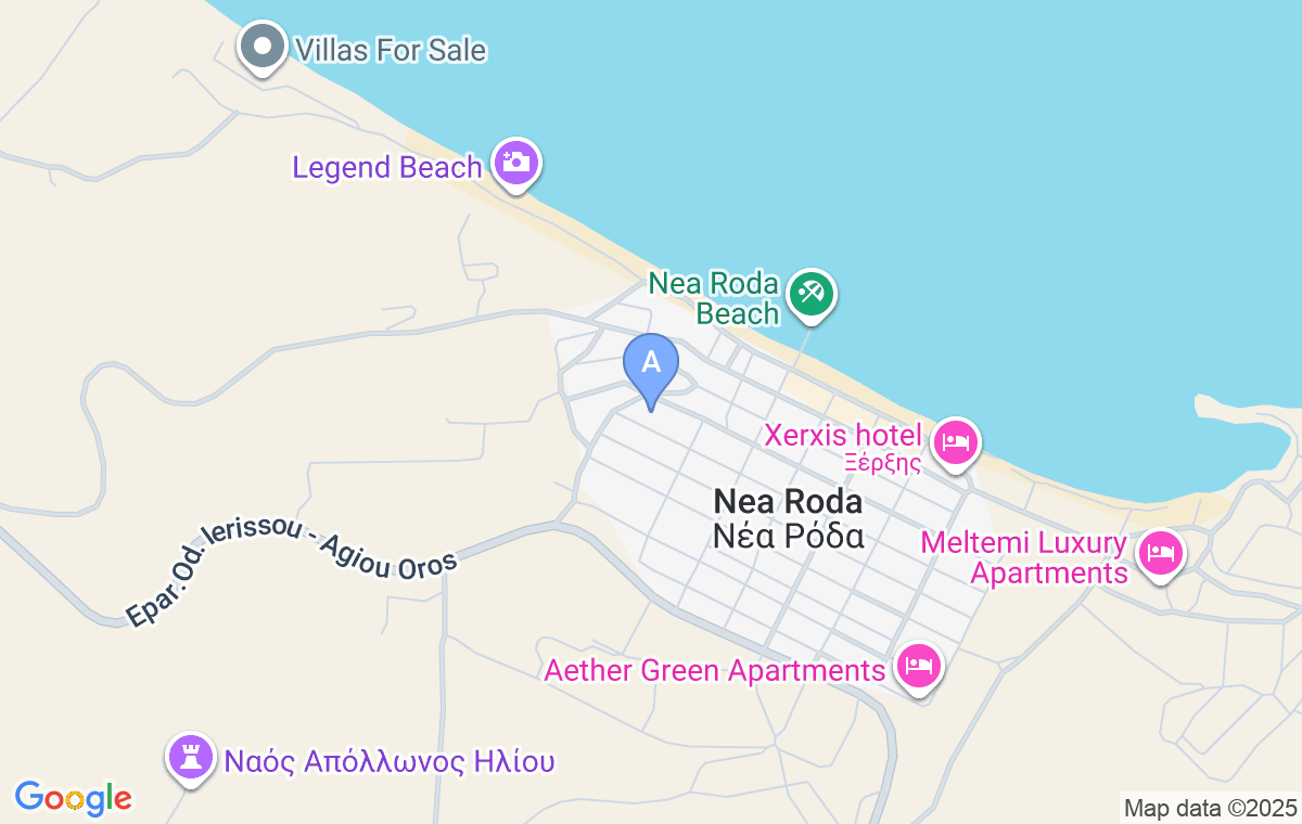Malon Lave Hotel smešten je na obali Atosa, u srcu živopisnog sela Nea Roda. Hotel je udaljen 300m od plaže Nea Roda, a centar sela s tradicionalnim tavernama i prodavnicama nalazi se na nekoliko minuta hoda. Ovaj porodični objekat ističe se jedinstvenim spojem tradicionalne mediteranske arhitekture i modernog dizajna, čineći ga idealnom destinacijom za one koji žele i autentičan grčki ambijent i vrhunski komfor uz talase Egejskog mora u neposrednoj blizini.