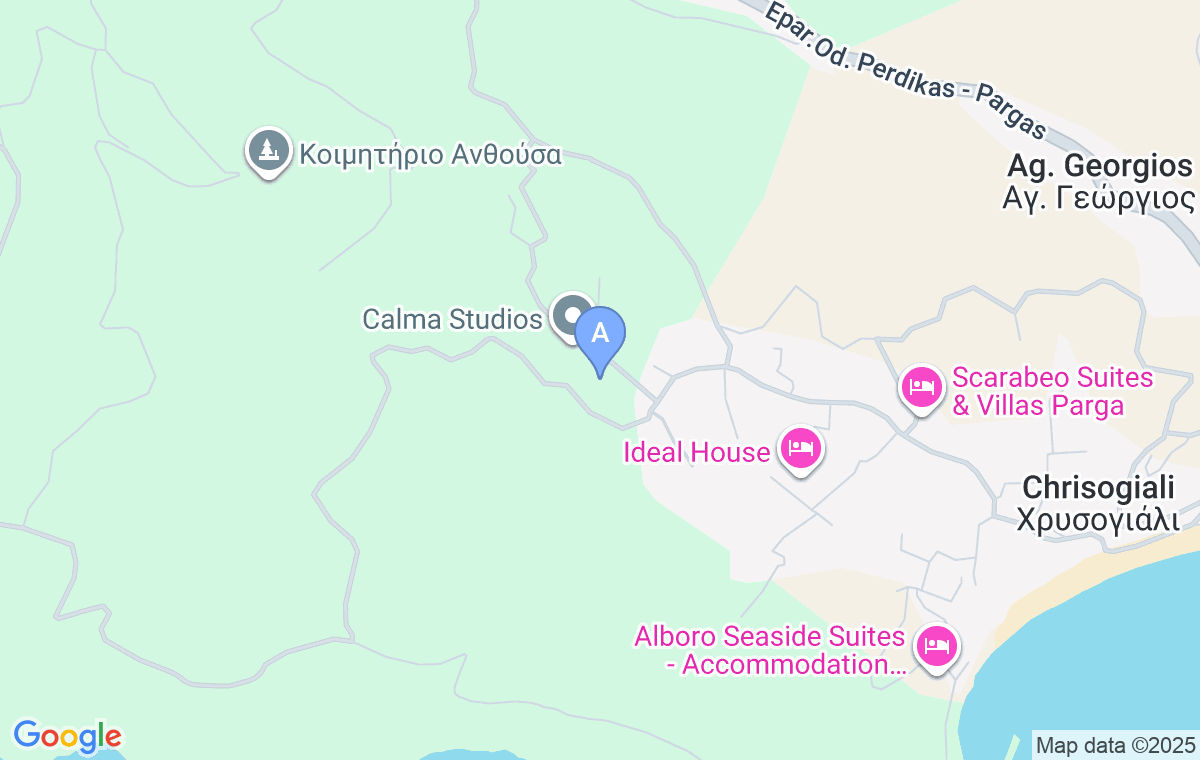 Smeštaj je udaljen oko 900m od plaže Valtos i oko 1,5km od Parge. Najbliža prodavnica i pekara su udaljene oko 500m.
