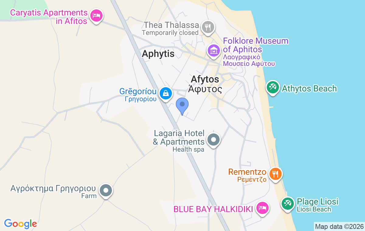 Ammos & Petra Apartment smešten je u mestu Afitos, poznatom po svojoj tradicionalnoj arhitekturi, kamenim ulicama i autentičnoj mediteranskoj atmosferi, koja gostima pruža jedinstveno iskustvo lokalnog šarma i kulture. Ovaj prijatan i funkcionalan apartman nalazi se na 850 m od plaže i približno 380 m od centra mesta, gde se nalaze brojne taverne, kafići i prodavnice. Zahvaljujući dobroj lokaciji i komfornom ambijentu, apartman predstavlja odličan izbor za boravak porodica sa decom, ali i manjih grupa prijatelja koji žele da uživaju u odmoru na Halkidikiju.