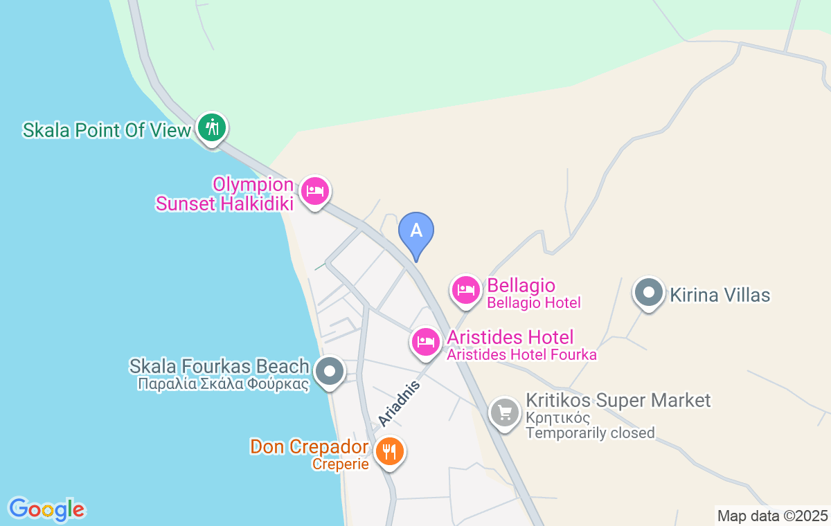 Vila se nalazi se na 350m od plaže i 700m od centra mesta. Marios okružuje divno mediteransko dvorište puno palmi, cveća i maslinovog drveta. U njemu gosti mogu da uživaju u pravljenju roštilja, laganom ispijanju kafe ili sunčanju. Nudi smeštaj u trokrevetnim i četvorokrevetnim studijima kao i petokrevetnom dupleks apartmanu. Sve jedinice su opremljene čajnom kuhinjom (rešo sa dve grejne ploče) sa frižiderom, kupatilom sa tuš kadom, LCD TV-om i klima uređajem koji se dodatno doplaćuje na licu mesta – 5e po danu korišćenja. Vila pruža ugodan boravak svima koji žele smeštaj van vreve letovališta. Peškiri nisu obezbeđeni.