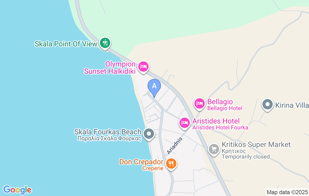 Purple Apartment se nalazi na 120m udaljenosti od najbliže plaže u mestu Skala Furka, na zapadnoj strani poluostrva Kasandra.