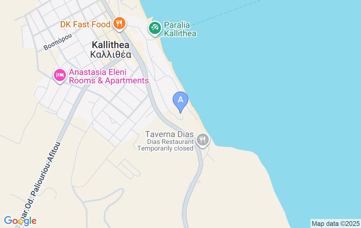Yades Elegant Villa se nalazi na 1km od mesta Kallithea kao i od Hrama Ammon Zeus, dok su znamenitosti poput Antropološkog muzeja i pećine Petralona udaljene oko 46 km. Najbliži aerodrom u Solunu nalazi se na 78km.