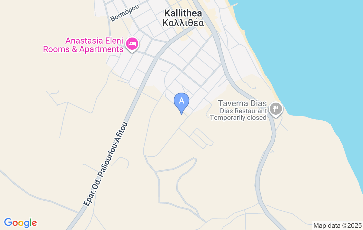 Luxury Villas je udaljen od Polihrona 11 km, od Haniotija 16 km, a od Pefkohorija 19 km. Najbliži aerodrom, aerodrom Makedonia u Solunu, nalazi se na udaljenosti od 77 km.