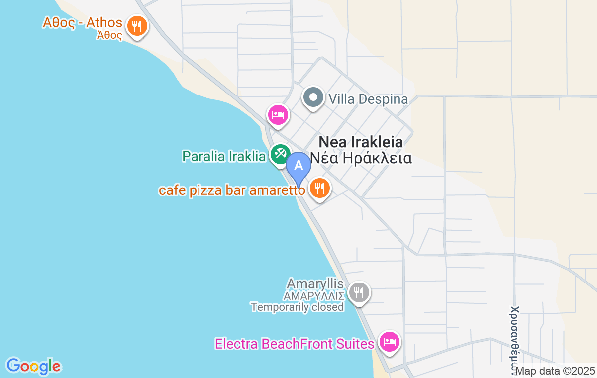 Aegean 180 Degrees Seaview Grand Suite smešten je u Nea Irakliji, mirnom i malom mestu koje nudi prijatnu atmosferu i autentičan duh grčkog primorja. Nalazi se tik uz obalu, a od mora ga odvaja samo ulica. Iz samog apartmana pruža se jedinstven i nesmetan pogled na otvoreno more, što boravku daje poseban osećaj širine i slobode. Plaža u mestu je udaljena 1100 m, a u blizini se nalazi Sahara plaža, jedna od najpoznatijih u ovom delu Halkidikija, sa dugim pojasom finog peska i čistom, bistrom vodom. Plaža nudi odlične sadržaje, od uređenih barova do delova koji su pogodniji za mirnije uživanje. Dodatna pogodnost je što se Solun nalazi na kratkoj udaljenosti, pa gosti lako mogu spojiti boravak na moru sa šetnjom i kulturnim sadržajima velikog grada.