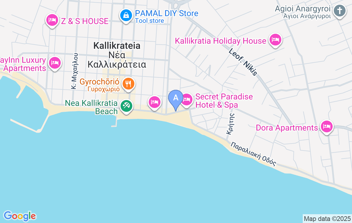 Sea Apartment je smeštaj koji se nalazi na samom početku Halkidikija, odnosno poluostrva Kasandra, u mirnom i šarmantnom letovalištu Nea Kalikratija. Ovaj smeštaj predstavlja idealan izbor za sve one koji žele da iskuse autentičnu grčku obalu, jer je udaljen svega 90 metara od široke i duge peščane plaže koja mami svojim zlatnim peskom i blistavim tirkiznim morem. Lokacija je izuzetno praktična za goste koji dolaze iz Srbije, ali i za one goste koji žele da kombinuju letovanje na Halkidikiju sa obilaskom Soluna, budući da se Sea Apartment nalazi u mestu koje je jedno od najbližih Solunu. Mirna okolina, odsustvo buke i gužve, kao i bogata ponuda kafića i taverni u samom mestu, čine ovaj smeštaj savršenim utočištem za odmor i relaksaciju.