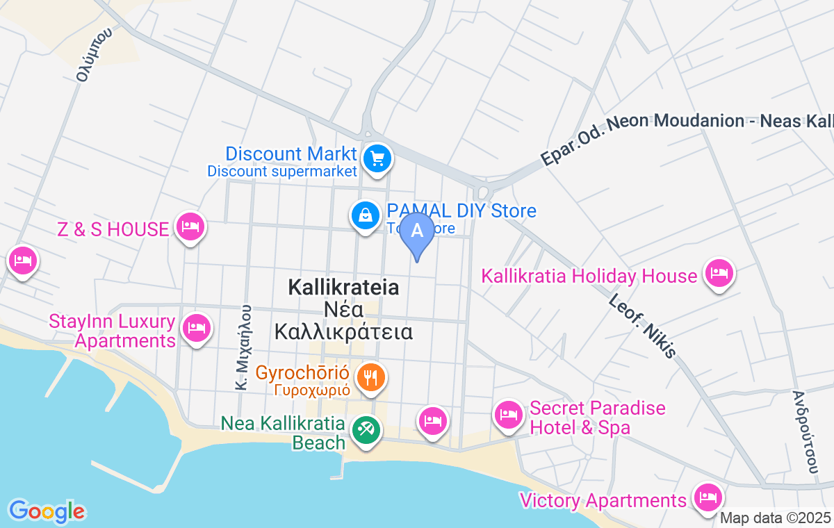 Dina Apartments se nalazi na samom početku poluostrva Kasandra, u jednom od najbližih letovališta Solunu, Nea Kalikratiji, na samo 450 m od peščane plaže. Ovaj komforan smeštaj predstavlja idealan izbor za porodice i prijatelje koji žele da uživaju u udobnosti i toploj atmosferi.