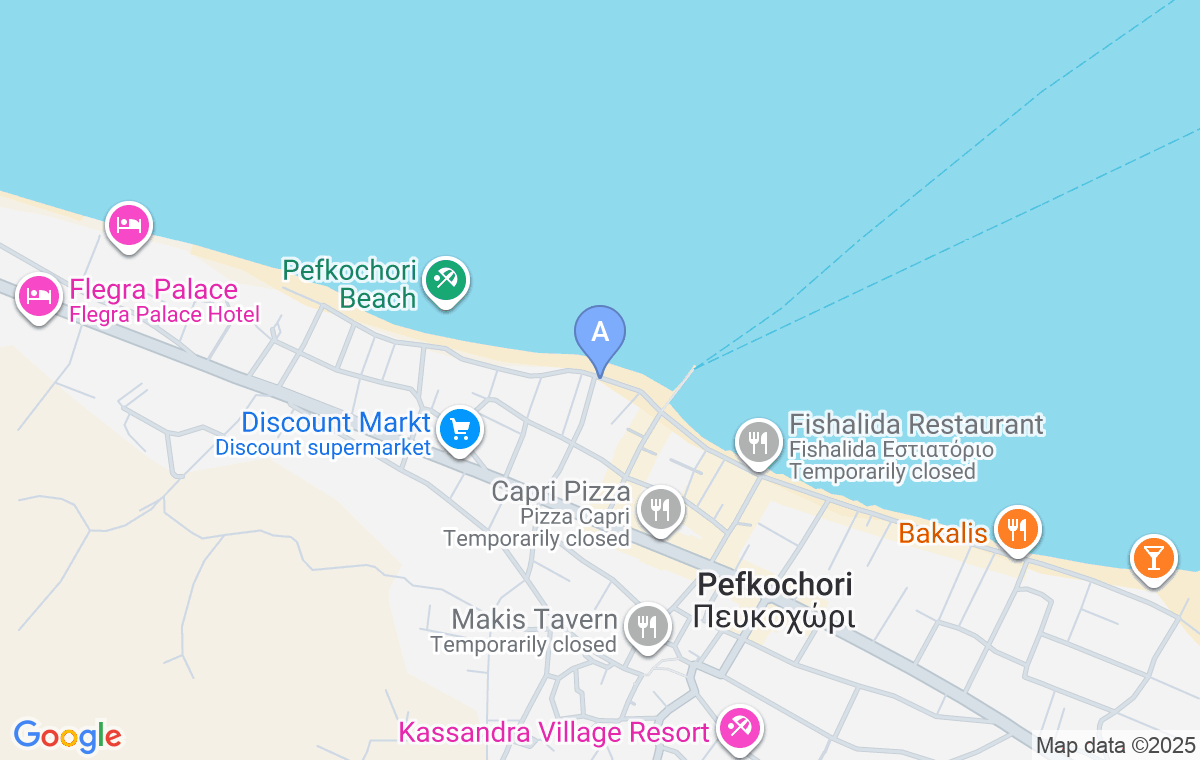 Seafront Apartment Pefkochori (60m2) je rezidencija uz plažu na drugom spratu, idealna za porodicu ili grupu prijatelja. Nalazi se u centru Pefkohorija, sa barom, supermarketom i kafićem na 100m.