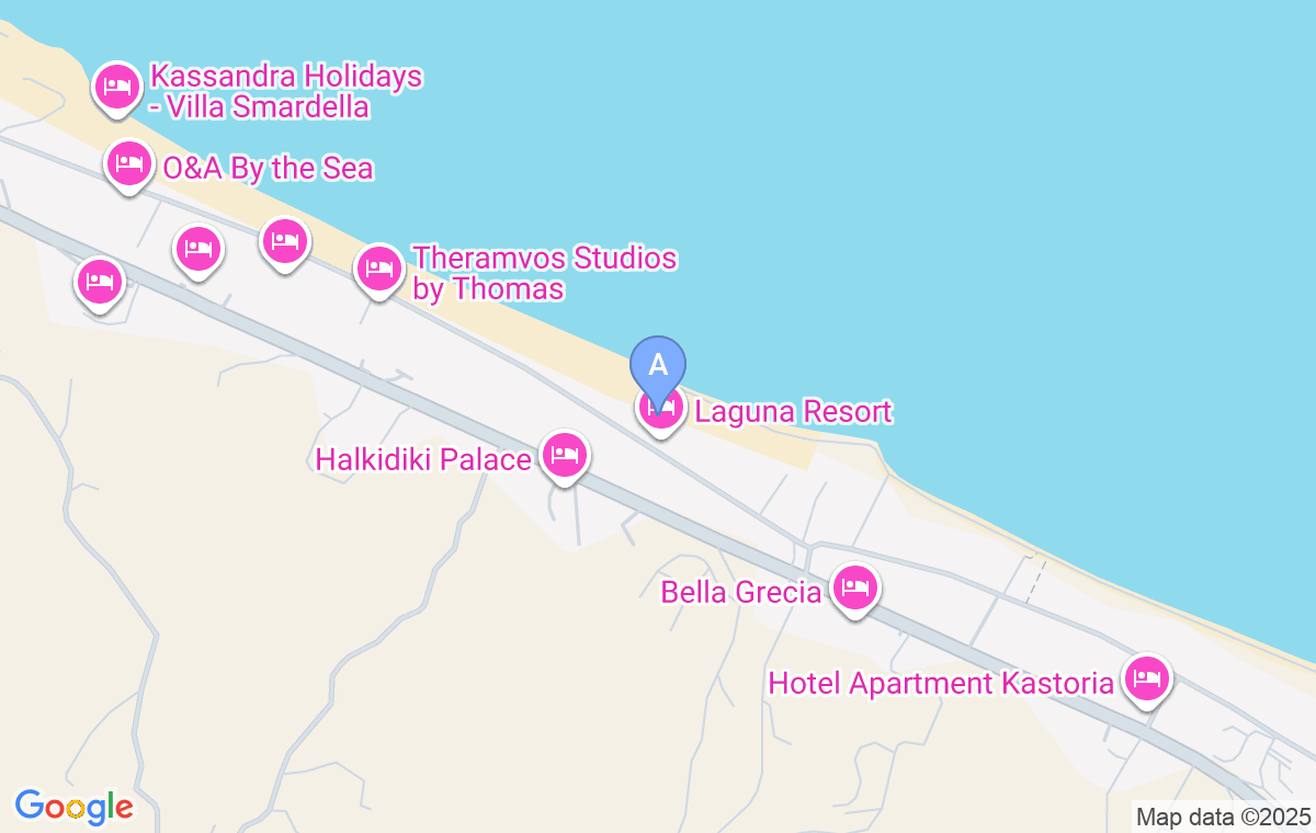 Beach Front Villa sa direktnim izlazom na plažu se nalazi na istočnoj obali poluostrva Kasandra, nadomak Polihrona - mirnog porodičnog letovališta čija je najveća prednost kilometrima dugačka peščana plaža sa veoma bistrom vodom, kao i blizina drugih lepih plaža i popularnih mesta.