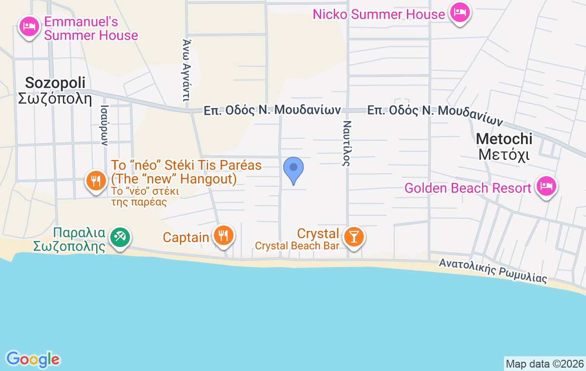 Hristina House se nalazi u mestu Sozopoli, na Halkidikiju, na 300 metara od gradske plaže i na 5 km od Vergia plaže. Smeštaj je idealan je za porodični odmor, daleko od gužve, u lepom uređenom dvorištu.