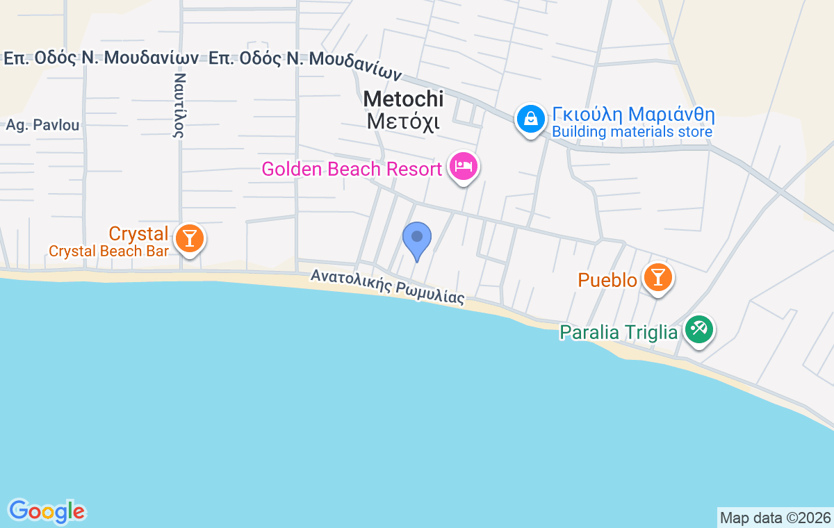 Metochi je šarmantno primorsko mesto u Grčkoj, poznato po mirnoj atmosferi i prijatnom ambijentu za odmor. Ntina House se nalazi u samom srcu mesta, a aerodrom u Solunu je 40 km udaljen, dok su Nea Kalikratia i Nea Mudanja na 13 km, odnosno 14 km od kuće.