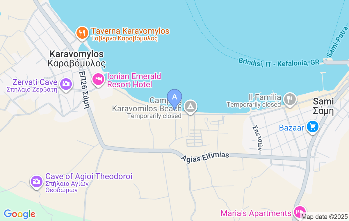 Na izlasku iz sela Karavomilos, na oko 200m levo od glavnog puta, nalazi se i jedna od top 10 turističkih atrakcija Kefalonije, misteriozno jezero Melisani. Duboko je 30 metara i skriveno u pećini, 22 metra ispod zemlje. Kada u podne sunčeva svetlost usmeri svoje zrake ka zemlji, voda u ovom jezeru dobija neverovatnu nijansu plave boje.