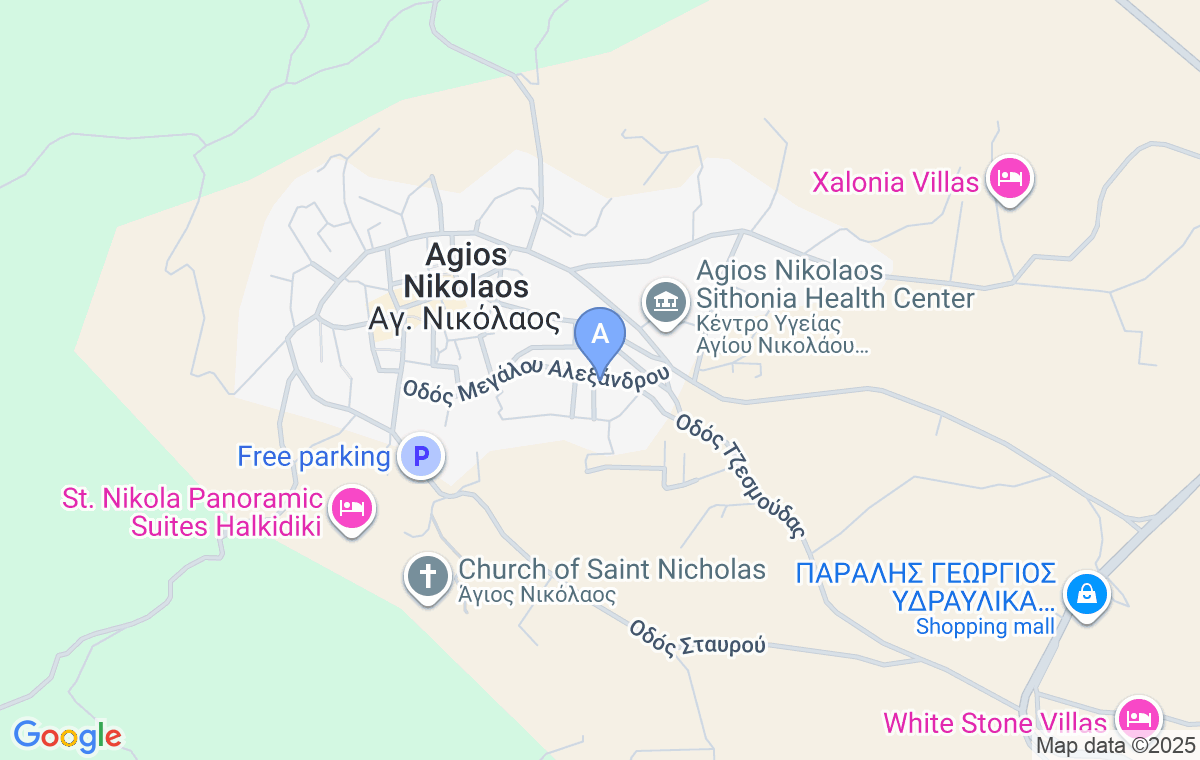 Nakon što uđete u selo Agios Nikolaos, na prvom račvanju ulice skrenite levo. Nastavite pravo i pa skrenite u drugu ulicu levo i nakon nekoliko metara ćete videti ovu vilu sa leve strane.