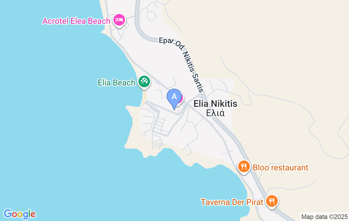 Kompleks se nalazi u oblasti Elia, na 10km od Nikitija. Raspolaže prodavnicama i pekarom, a doktor dolazi svaki dan, pa nema razloga za napuštanje hotela.