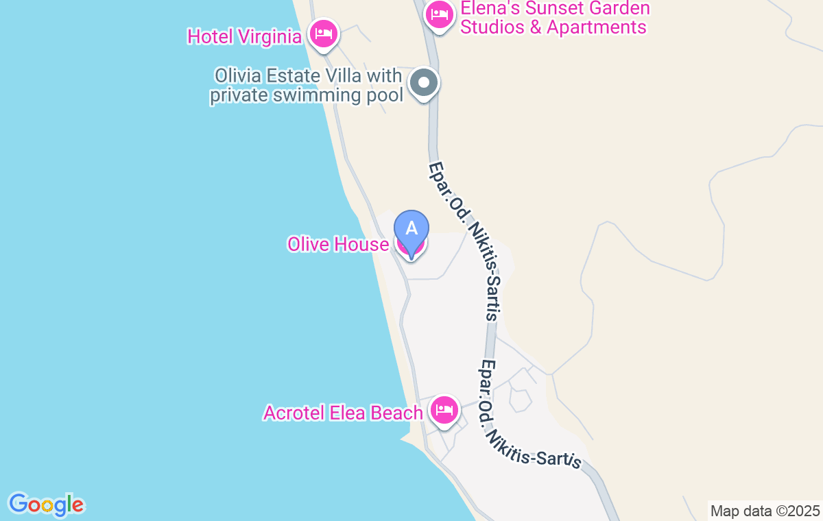Olive House je smeštaj nadomak plaže u oblasti Elia. U dobrom je stanju, delimično je renoviran i redovno se održava. Nalazi se u veoma prijatnom ambijentu, okružen je zelenilom i velikim i lepo uređenim dvorištem.