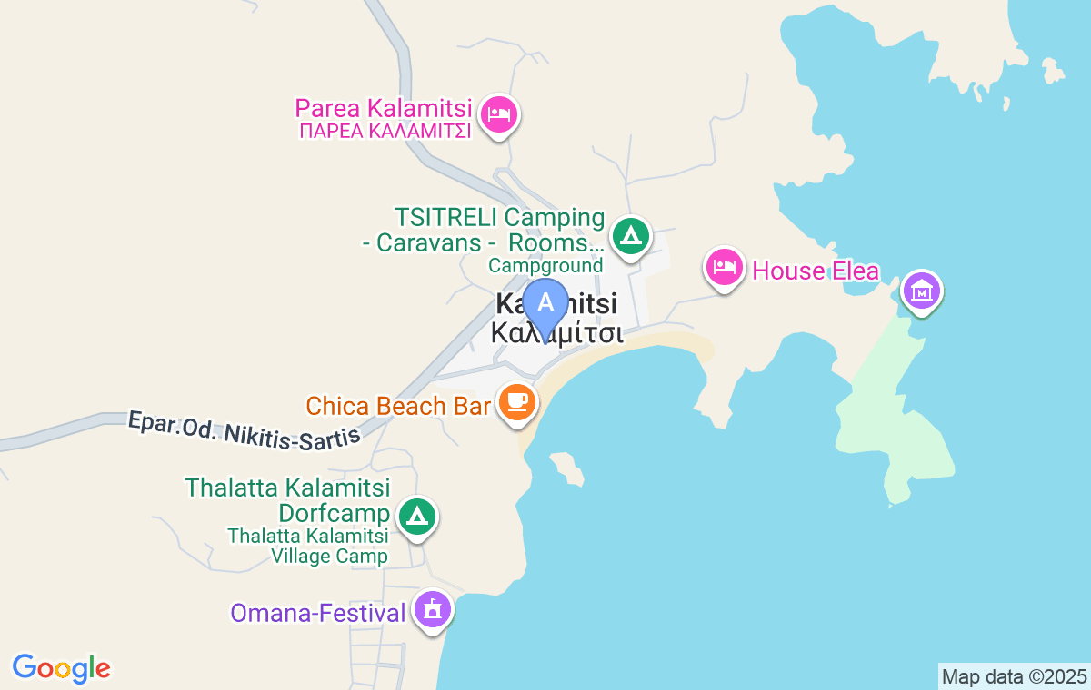 Da biste došli do smeštaja Didakis, skrenućete sa glavnog puta kod prve table za Kalamitsi i spustićete se do ulice pored plaže, vozićete jos nekih 50m i stižete do smeštaja koji se nalazi sa leve strane.