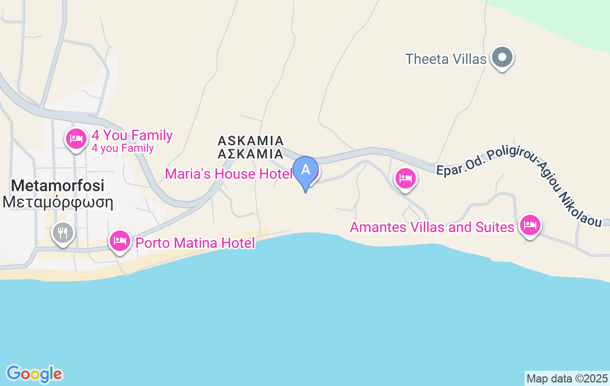 Vozeći magistralnim putem Poligiros – Agios Nikolaos iz Metamorfozija ka Nikitiju, videćete sa desne strane tablu za Anagnostou Studios. Odmah nakon tog smeštaja, skrenite na put desno i vozite još 200m dok ne dođete do hotela Maria’s House.