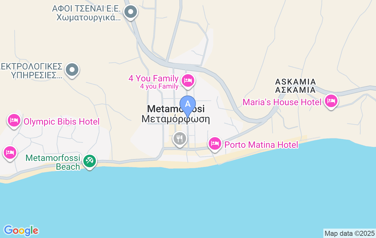 Maison De Sable Apartments nalazi se u centru mesta Metamorfosi, u mirnoj ulici i prijatnom ambijentu, na svega 270 metara od peščane plaže, nudeći idealan spoj blizine mora i lokalnih sadržaja. Idealan je za one koji traže komfor, mir i praktičnu bazu za istraživanje Sitonije tokom cele godine.