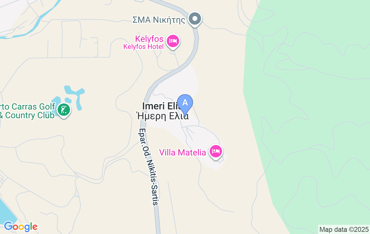 Vozeći magistralnim putem Nikiti – Sarti, na oko 280m posle skretanja za Kelyfos Hotel, skrenite levo i produžite uzbrdo još 250m dok ne vidite Aamar House.