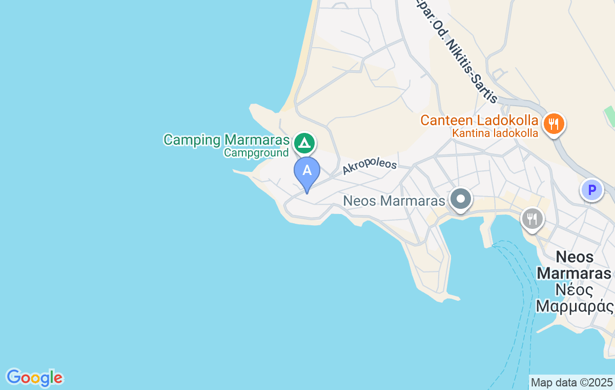 Ukoliko dolazite, skrenite sa magistralnog puta na prvom skretanju za Neos Marmaras (iz pravca Nikitija), pa nastavite istom ulicom pravo još oko 800m.