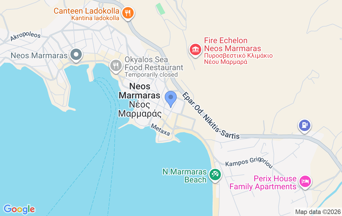 Neos Marmaras je živopisno primorsko mesto na zapadnoj obali Sitonije, razvijeno duž obronaka planine Itamos, odakle se otvaraju impresivni prizori prema Toroneoskom zalivu i ostrvcetu Kelifos. Nastao početkom 20. veka, ovaj gradić je tokom vremena izrastao u jedno od najprepoznatljivijih letovališta u regionu, zadržavajući pritom autentičan karakter i duh tradicionalnog Marmarasa. Savremeni Neos Marmaras nudi skladan spoj lokalne kulture i bogate turističke ponude, pa gosti mogu uživati u tipičnom grčkom načinu života uz sve pogodnosti modernog letovanja. U okolini se smenjuju različite vrste plaža, od duge i uređene gradske plaže pogodne za porodice, do skrivenijih uvala i poznatih peščanih plaža poput Paradisa i Lagomandre, koje oduševljavaju čistim, tirkiznim morem i prirodnim okruženjem. Tokom dana mesto odiše opuštenom atmosferom, uz šetnje rivom, kupanje i uživanje u lokalnim specijalitetima, dok večeri donose živost šetališta ispunjenih tavernama, kafićima i prijatnim letnjim raspoloženjem. I pored svoje popularnosti, Neos Marmaras uspeva da sačuva toplinu, gostoprimstvo i šarm manjeg mediteranskog mesta, zbog čega se gosti rado vraćaju iz godine u godinu. Smeštaj je od međunarodnog aerodroma u Solunu udaljen oko 109 kilometara.