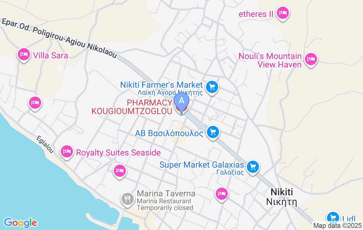Smeštaj ćete pronaći iznad apoteke, u zgradi kod semafora u Nikitiju.