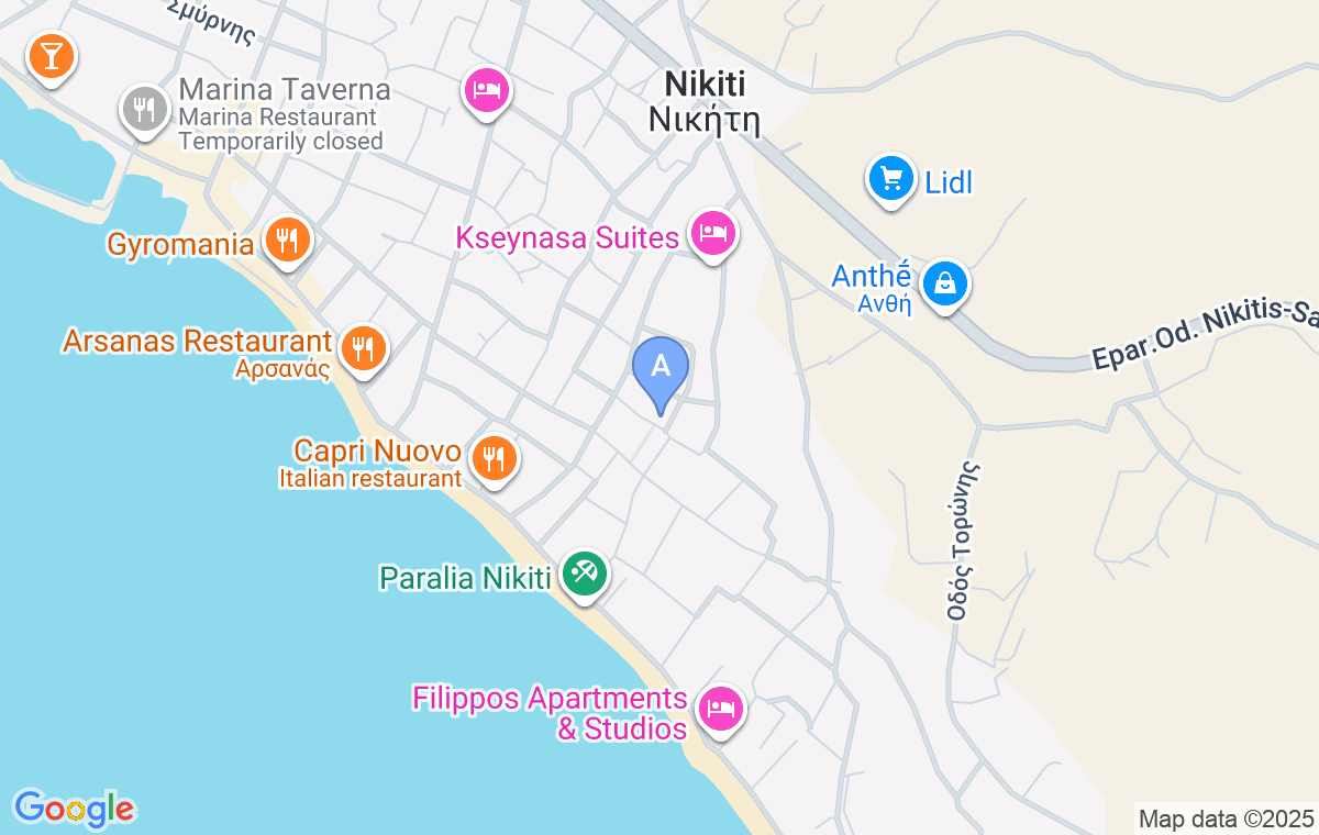 Smeštaj je udaljen svega 300m od gradske peščane plaže u Nikitiju, kao i od prodavnica i taverni.