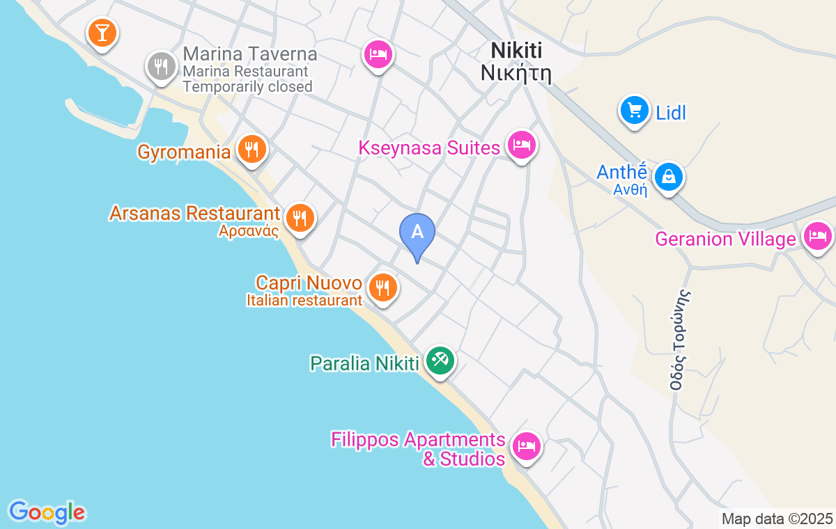 Aelia Luxury Apartments se od popularnog letovališta Neos Marmaras nalazi na udaljenosti od 22km, od mesta Sarti 45km, dok je od najbližeg aerodroma u Solunu udaljena 89km.