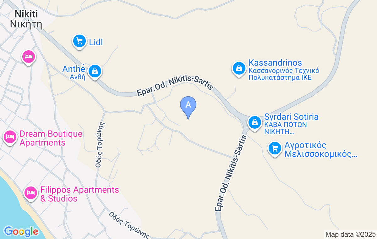 Nikiti Dream Villas se od popularnog letovališta Neos Marmaras nalazi na udaljenosti od 20km, od mesta Sarti 44km, dok je od najbližeg aerodroma u Solunu udaljen 90km.