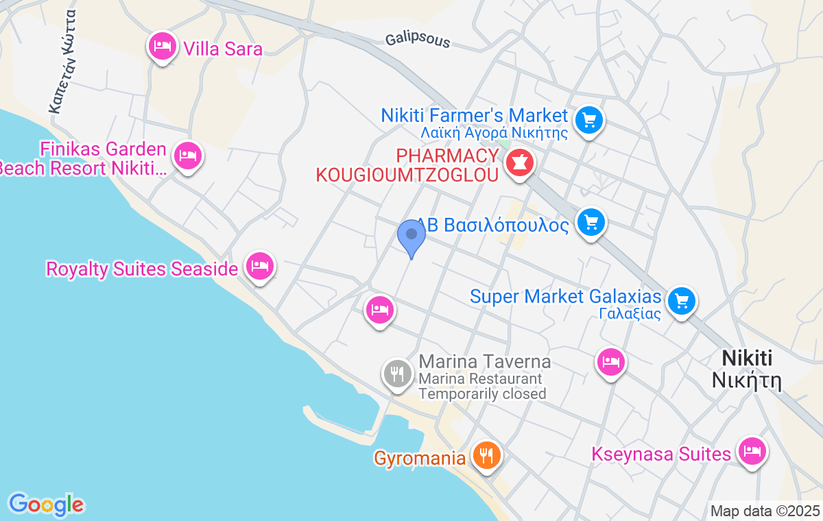 Sea Nomad Luxury Maisonette nalazi se oko 2 km od Starog dela Nikitija, 7 km od Metamorfosija, 20 km od Neos Marmarasa, a od najbližeg aerodroma u Solunu udaljena je 88 km.