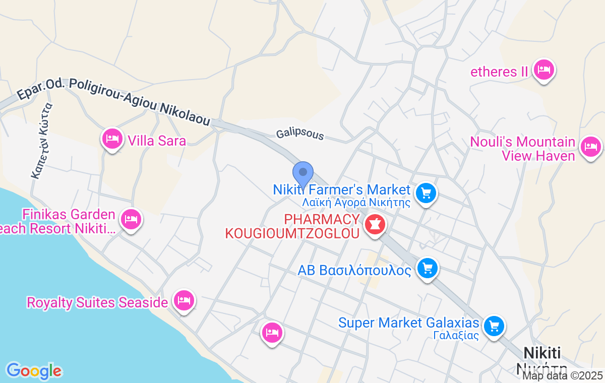 Nikiti se nalazi na zapadnoj obali Sitonije i važi za jedno od najrazvijenijih i najposećenijih letovališta Halkidikija, u kojem se uspešno prepliću moderan turistički život i tradicionalni grčki ambijent. Mesto je poznato po svojoj dugoj peščanoj plaži sa postepenim ulaskom u more, što ga čini posebno pogodnim za porodice sa decom, dok čistoća mora i obale iz godine u godinu biva nagrađena Plavom zastavom. Duž obale prostire se uređeno šetalište ispunjeno tavernama, kafićima i barovima, koje tokom letnjih meseci donosi živu atmosferu, naročito u večernjim satima. Noviji deo Nikitija, smešten uz samu plažu, odiše dinamikom i nudi bogat izbor sadržaja, dok se iznad magistrale, na blagom uzvišenju, nalazi staro jezgro mesta sa kamenim kućama, uskim sokacima i crkvom Svetog Nikite, koje svedoči o njegovom vizantijskom nasleđu i donosi mirniji, autentičan doživljaj boravka. Upravo po ovom svecu mesto je i dobilo ime, a stari deo Nikitija zrači istorijom i lokalnim šarmom. Pored prijatne atmosfere, Nikiti je i izuzetno praktičan za boravak, sa kompletnom infrastrukturom koja uključuje velike supermarkete poput Lidla, apoteke, pekare i lokalnu pijacu koja se svakog petka održava i poznata je po bogatoj ponudi domaćih proizvoda, naročito meda. Zahvaljujući svom položaju na samom ulazu u Sitoniju, Nikiti predstavlja odličnu polaznu tačku za obilazak okolnih plaža, među kojima se posebno ističu Agios Joanis, Koviou, Kalogria i Spatijes, koje se ubrajaju među najlepše na zapadnoj strani poluostrva. Smeštaj je od međunarodnog aerodroma u Solunu udaljen 88 kilometara.